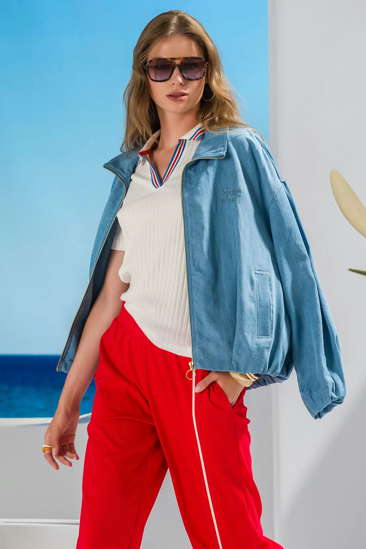Bomber Foursoul em tencel, um tecido de origem sustentável reconhecido pela sua leveza, maciez e caimento natural. O fecho de zíper frontal estrutura a peça com uma linha contemporânea e funcional, enquanto as mangas com acabamento abalonado introduzem volume e feminilidade num equilíbrio sofisticado entre o casual e o editorial. Uma proposta da Foursoul que reinterpreta o clássico formato bomber com materiais de qualidade e detalhes de caráter, pensada para compor looks descontraídos com elegância e distinção.