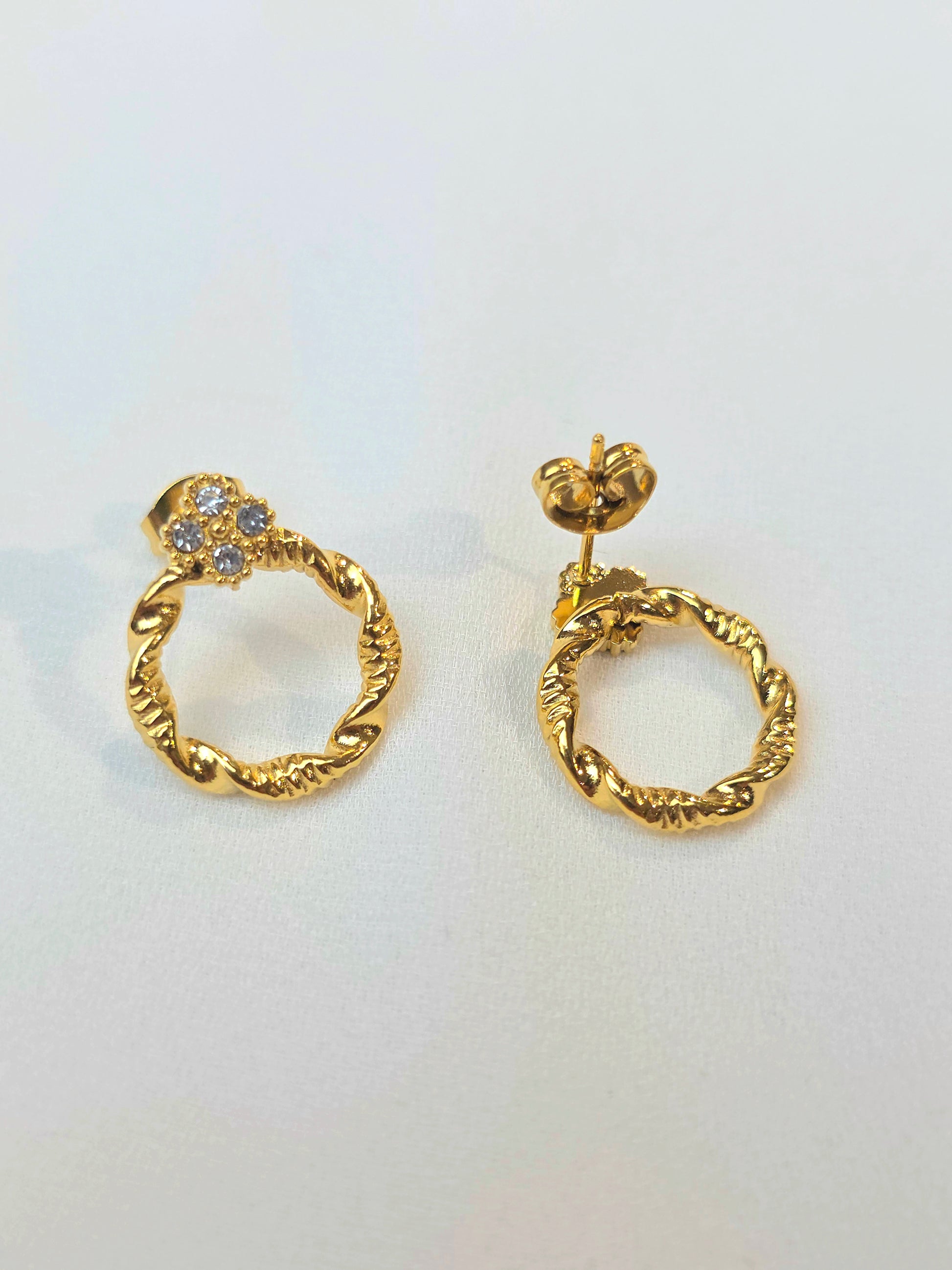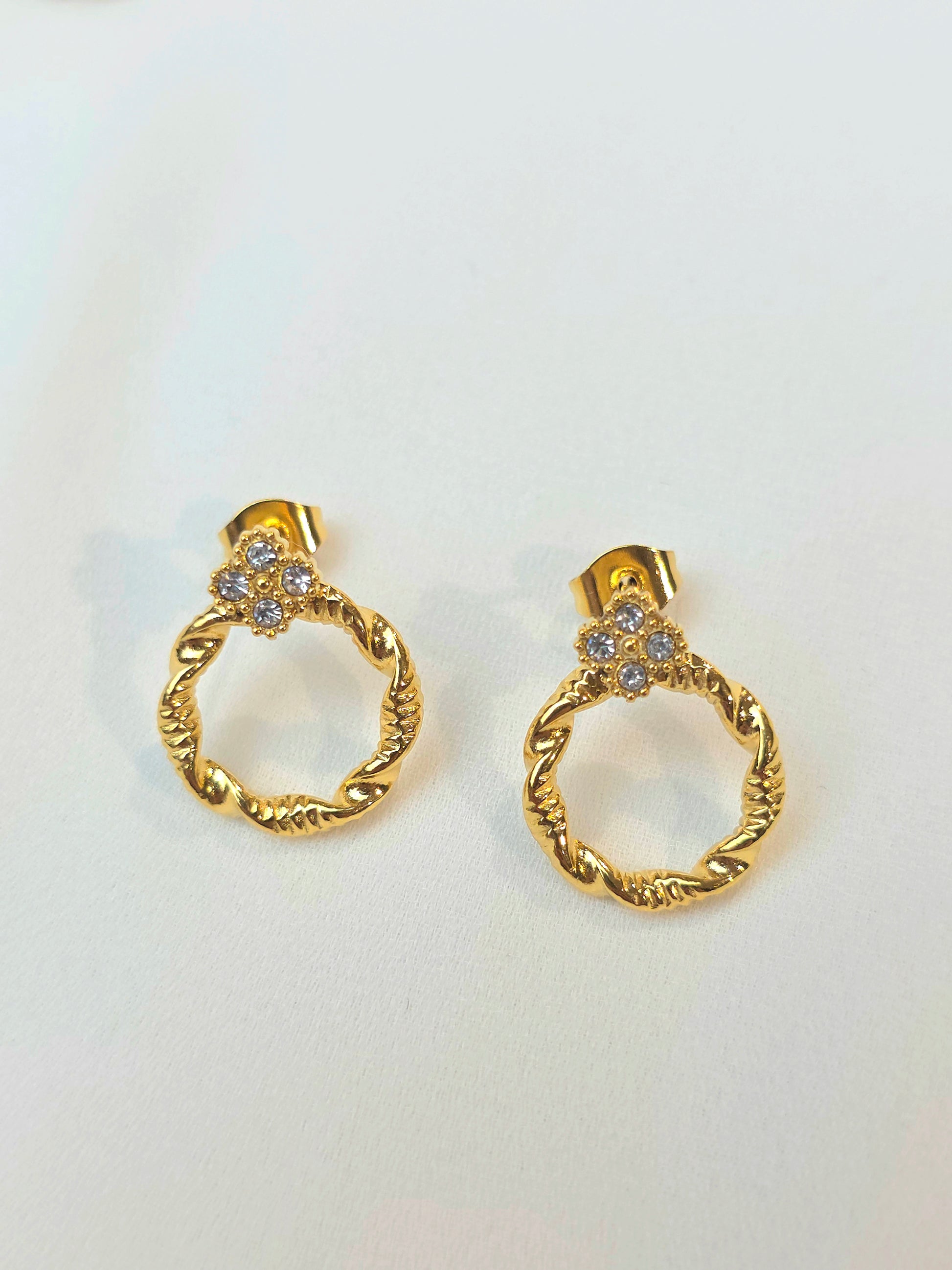 Os brincos Bastta em aço inoxidável combinam um pendente em argola metálica com pedras brilhantes, criando um ponto de luz discreto e sofisticado. O desenho, simultaneamente clássico e contemporâneo, funciona bem com looks minimalistas, camisas e blazers, mas também com coordenados mais cuidados para jantar ou evento. Com fecho de espigão, oferecem uma colocação prática e segura, ideal para quem procura um acessório versátil, elegante e fácil de usar em rotação.