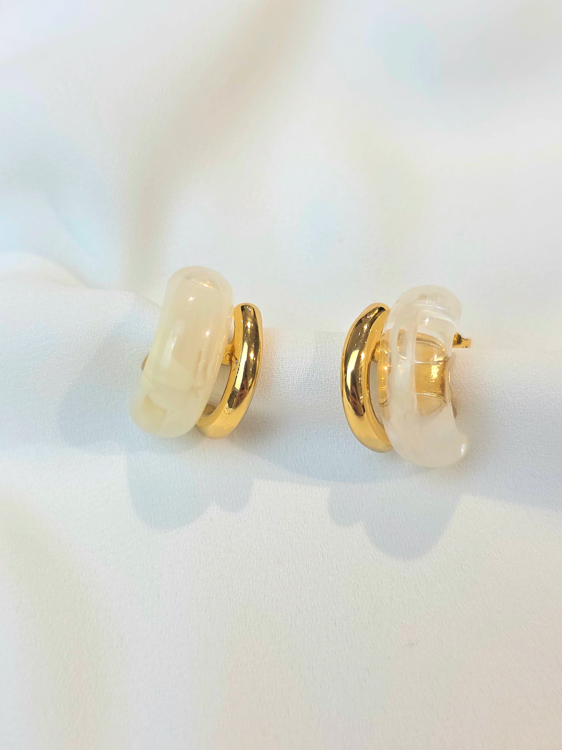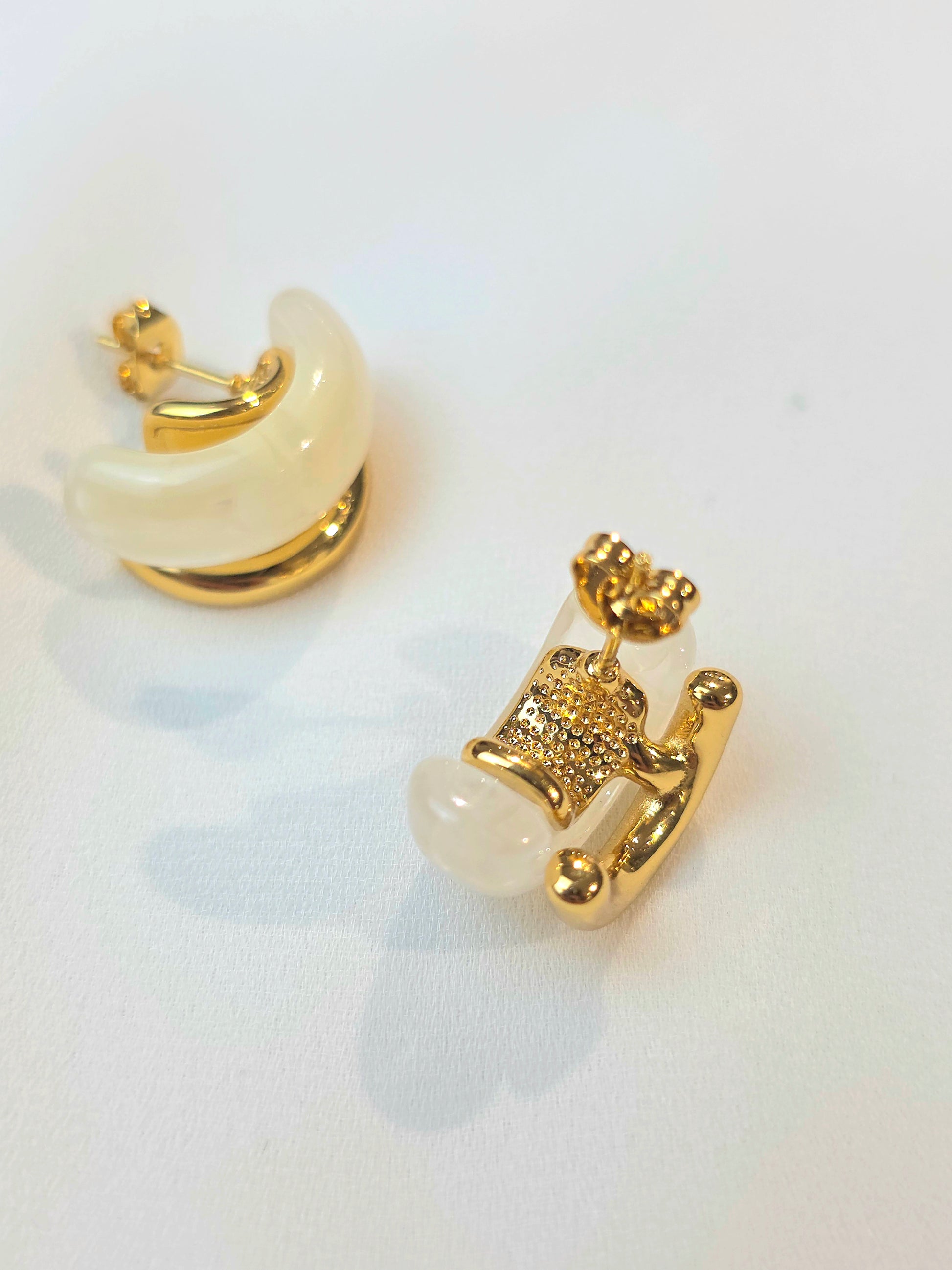 Os brincos Bastta em aço inoxidável assumem a forma de argola pequena, com detalhe em metal e resina para um acabamento contemporâneo e discreto. O formato compacto torna-os ideais para uso diário, com uma presença elegante que funciona tanto com looks profissionais como com coordenados mais descontraídos ao fim de semana. O fecho de espigão garante praticidade e um ajuste seguro, perfeito para quem procura um acessório versátil, fácil de combinar e com um toque de cor e textura.
