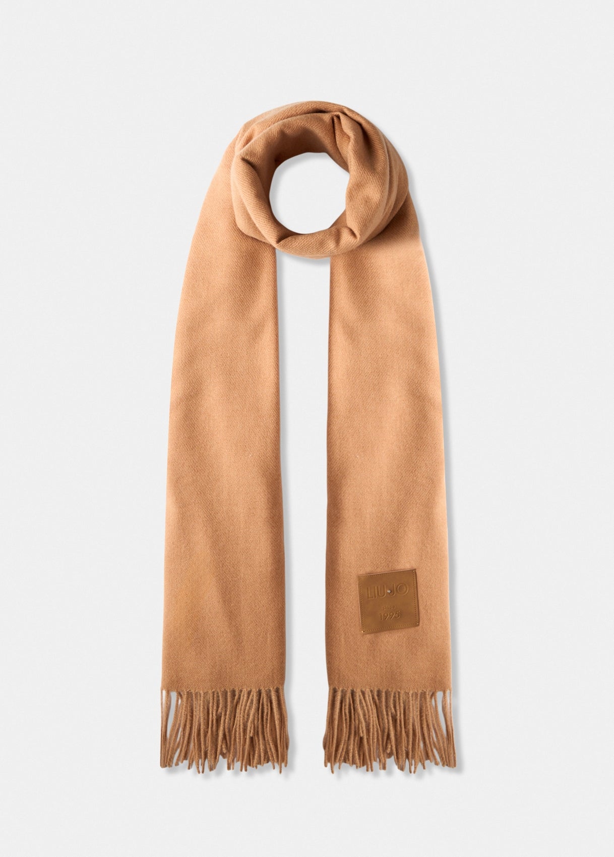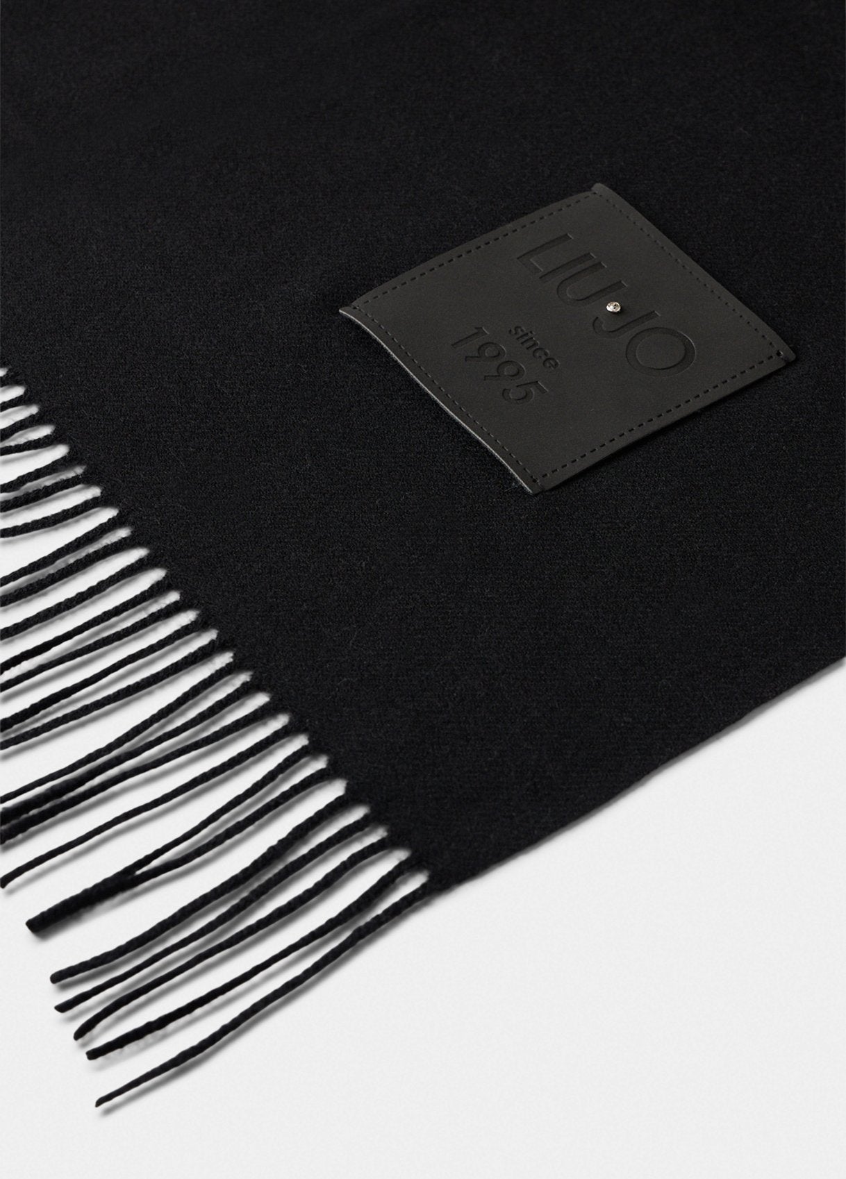 Cachecol Liu Jo em tecido macio, com etiqueta discreta com logotipo e acabamento em franjas, ideal para adicionar estilo e sofisticação aos seus looks de inverno.