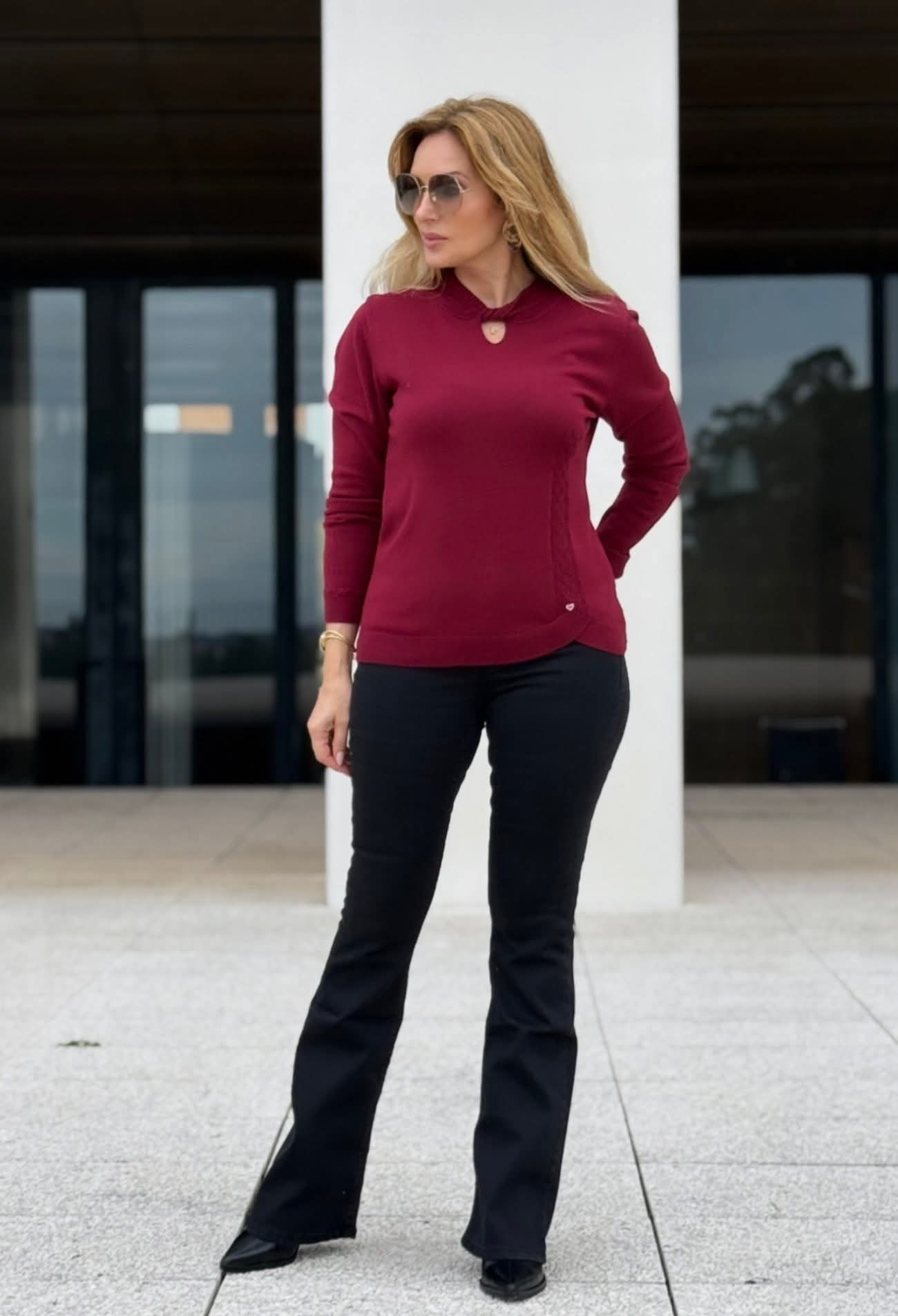 Calças bootcut Bigzone em sarja macia, com corte ligeiramente à boca de sino que alonga a silhueta. Apresentam cintura subida, bolsos traseiros decorados com brilhantes e fecho frontal de zíper e botão. Uma peça versátil e elegante para o dia a dia.
