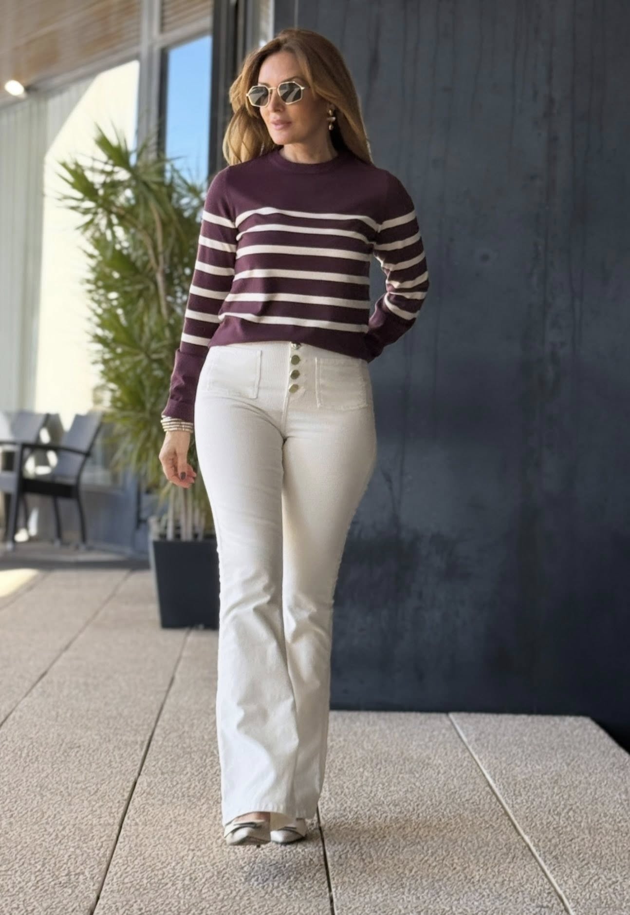 Calças Bigzone modelo bootcut, confeccionadas em bombazine macia. Possuem fecho frontal com 5 botões e bolsos de chapa à frente e atrás, garantindo um design prático e atual. O corte bootcut alonga a silhueta, combinando estilo e conforto no dia a dia.