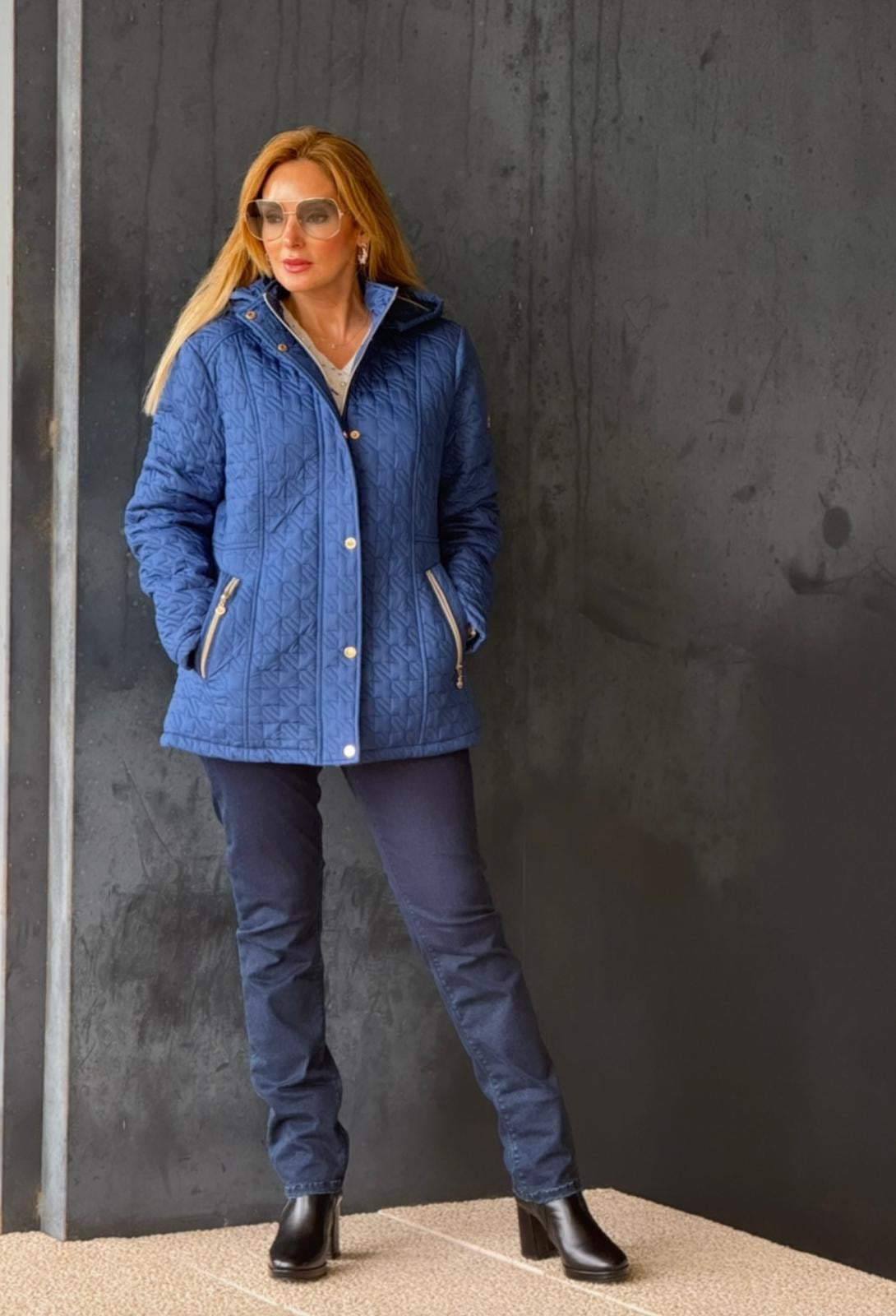 Calça de ganga Bigzone com lavagem azul escura e corte slim que valoriza a silhueta. Apresenta cintura subida, fecho de zíper e botão, além de bolsos traseiros decorados com brilhantes para um toque feminino e sofisticado. Ideal para compor looks casuais com estilo.