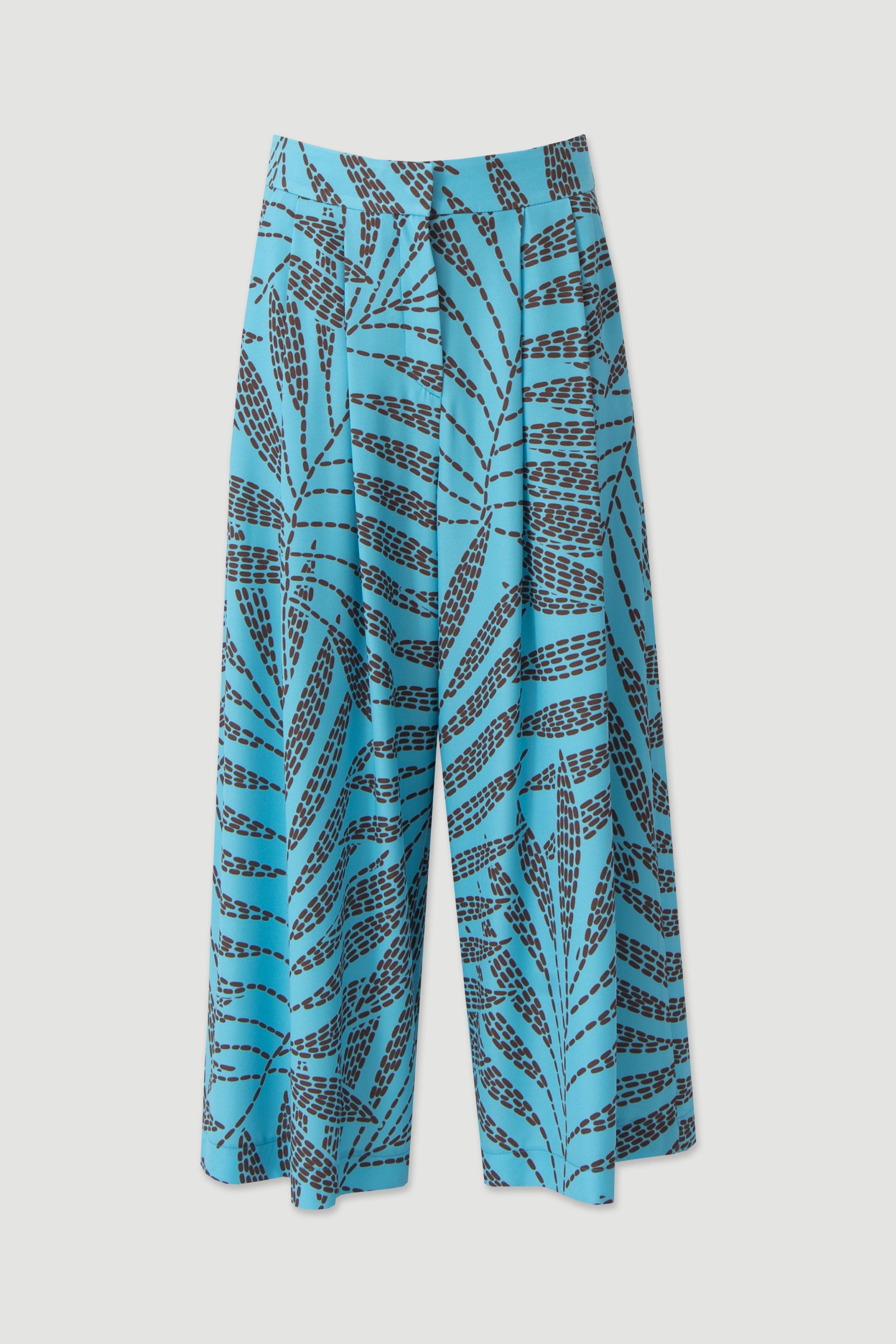 Calça Ferrache de perna larga em tecido fluido, com estampado gráfico em contraste que cria uma leitura visual marcada e contemporânea. A cintura confortável e o caimento solto garantem liberdade de movimento sem abdicar da elegância, tornando-a uma peça igualmente acertada no contexto profissional ou em ocasiões de lazer cuidado. Parte de um conjunto coordenado, conjuga de forma natural com o top Ferrache no mesmo tecido e estampado, permitindo compor um look total de impacto com coerência e sofisticação. Uma proposta da Ferrache que une conforto, versatilidade e identidade visual numa única peça.