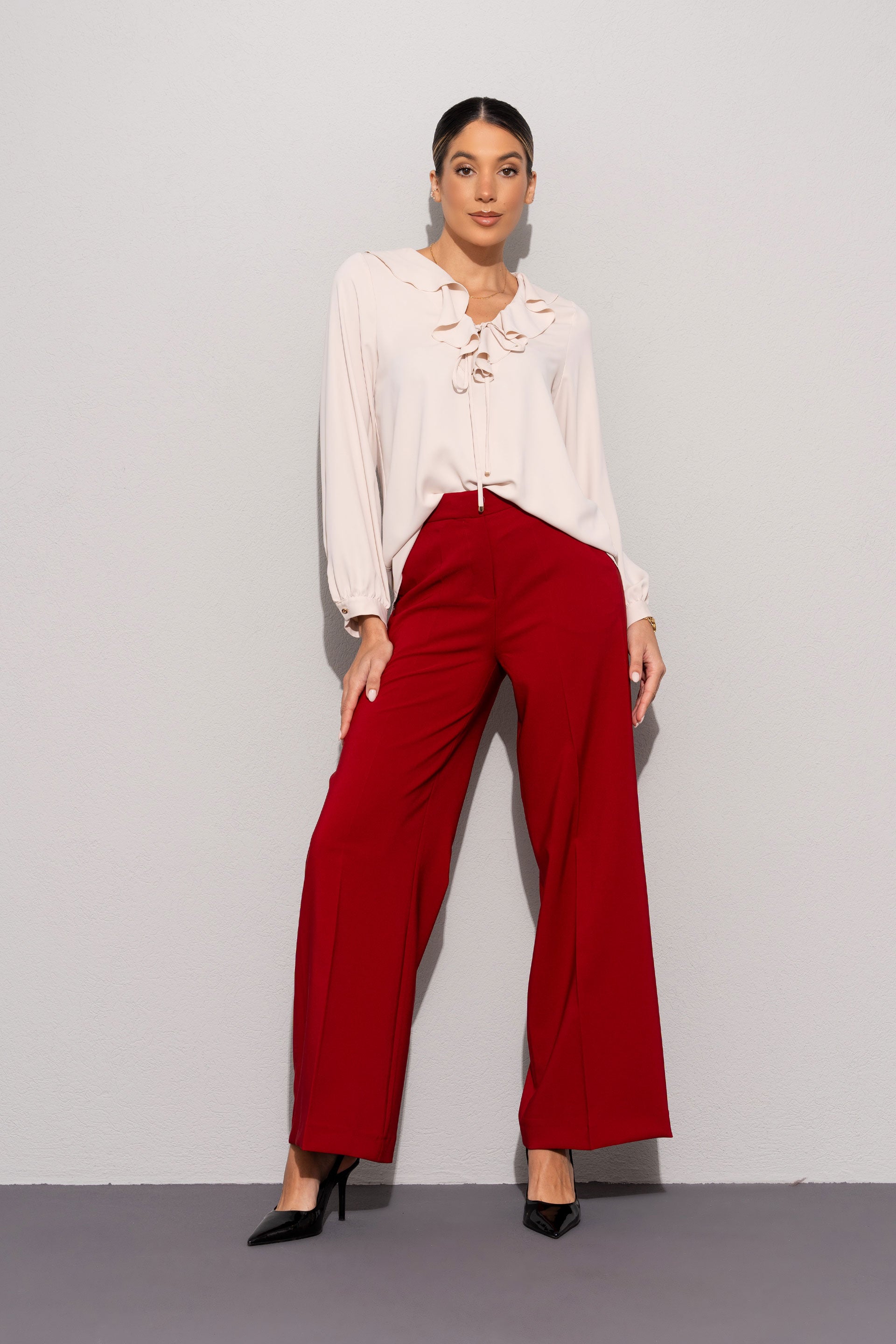 Calça Ferrache comprida de corte wide leg em tecido estruturado, garantindo elegância e fluidez. Apresenta pinças frontais e cintura subida com cós liso que alonga a silhueta. Uma peça versátil para looks modernos e sofisticados.
