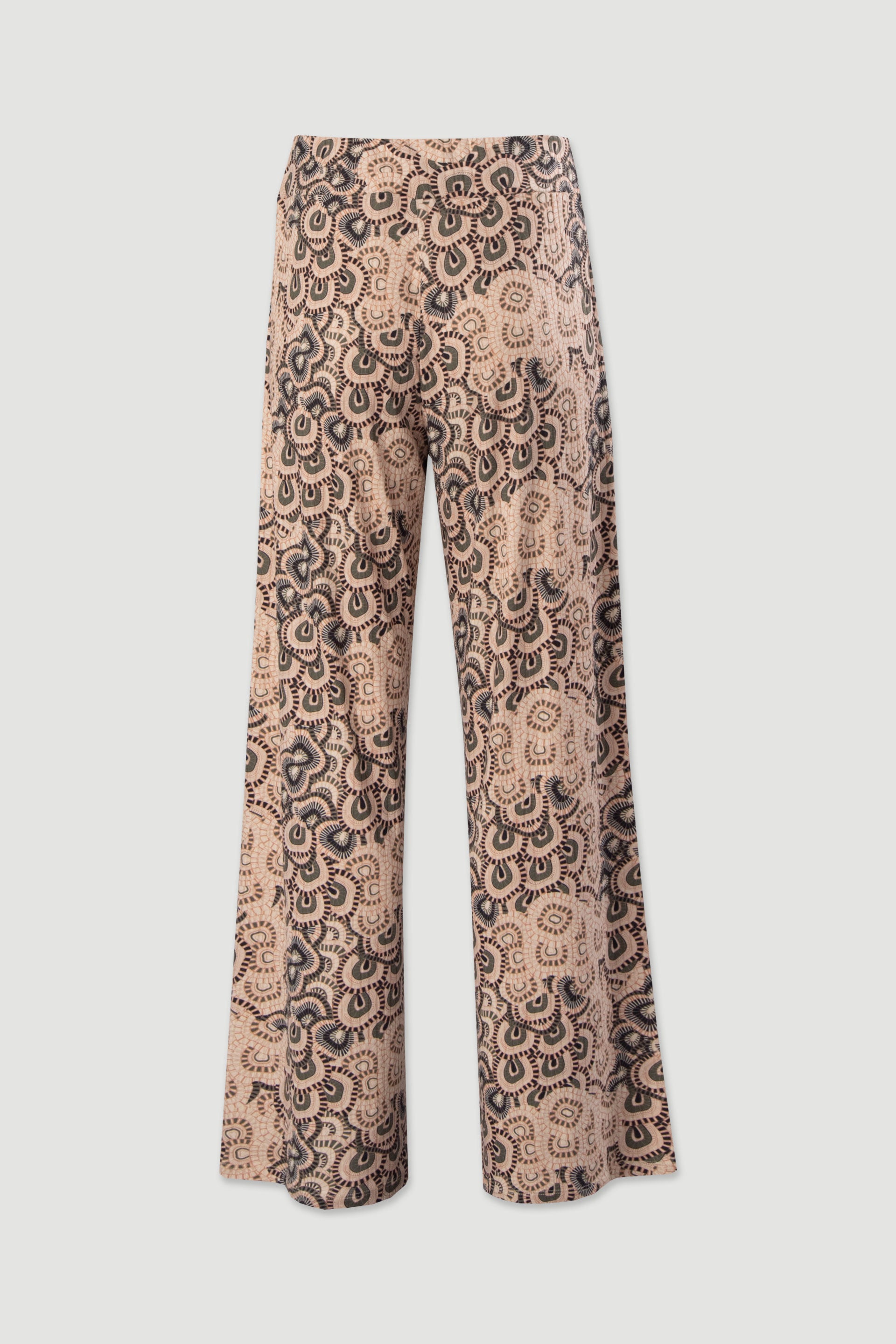 A calça comprida Ferrache em malha combina conforto e estilo contemporâneo. Com estampado geométrico, apresenta corte wide leg e cintura subida com cós liso e elástico, que garante ajuste perfeito e liberdade de movimentos. Uma peça versátil, ideal para criar looks modernos e sofisticados.
