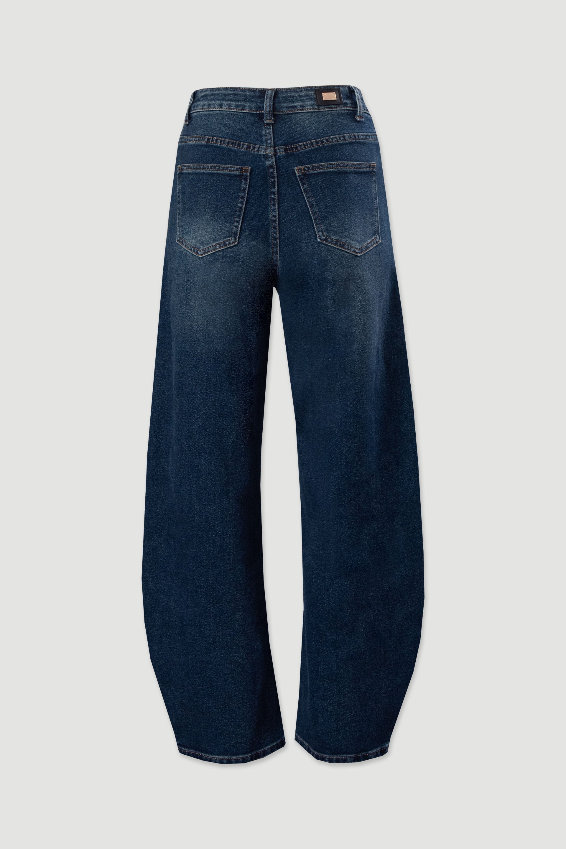 Calças de ganga Ferrache em corte balloon, com cintura média e pernas amplas que proporcionam conforto e liberdade de movimento. Confeccionadas em denim macio, combinam estilo casual e descontraído, ideais para looks modernos e confortáveis do dia a dia.