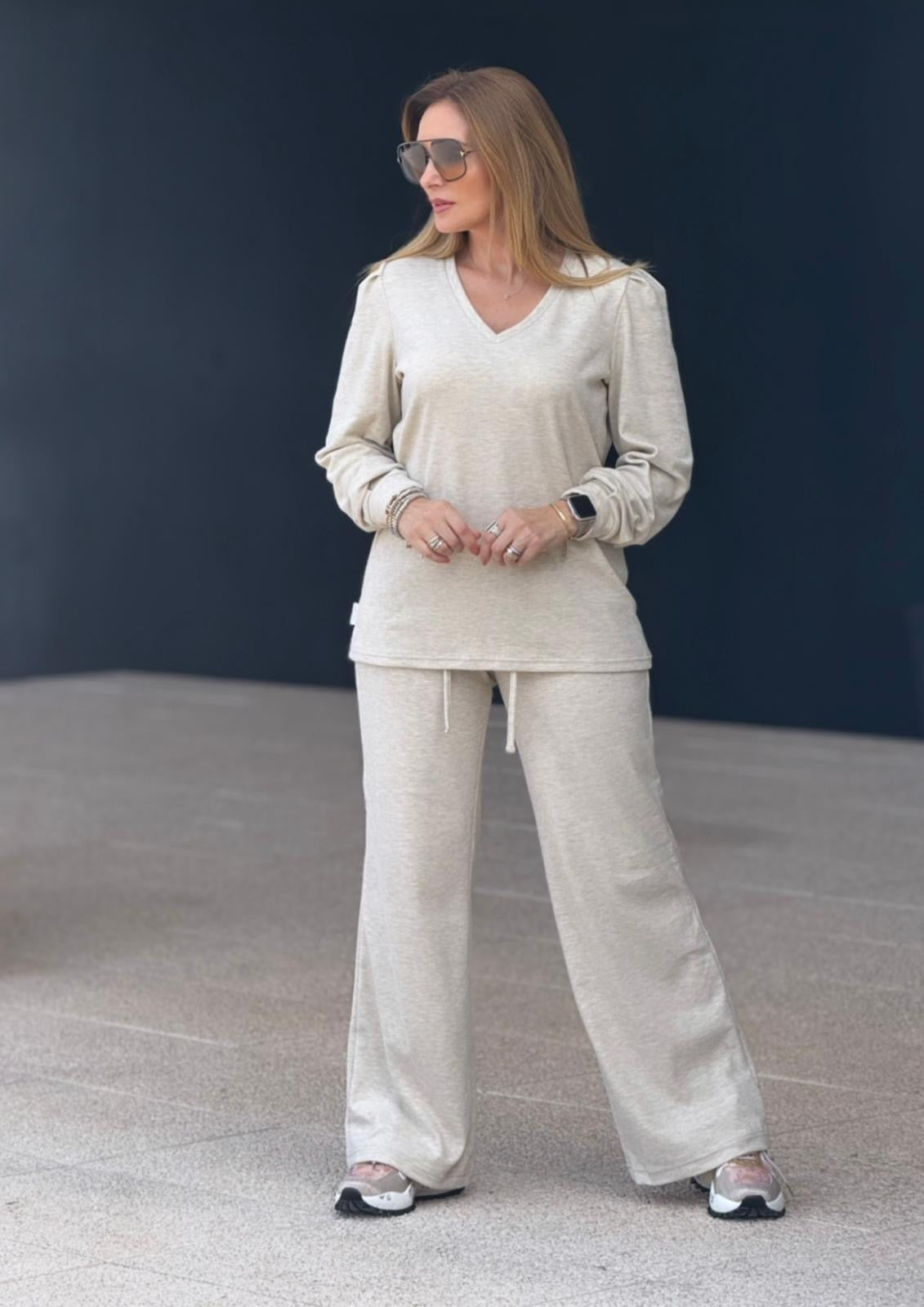 Calças pantalonas Ysabel Mora com corte reto e estilo confortável, perfeitas para o dia a dia. Confeccionadas em tecido mesclado super macio e quente, garantem bem-estar e liberdade de movimento. A cintura elástica com atilho ajustável proporciona um ajuste perfeito. Ideais para usar em casa, em viagens ou em looks casuais com um toque elegante.