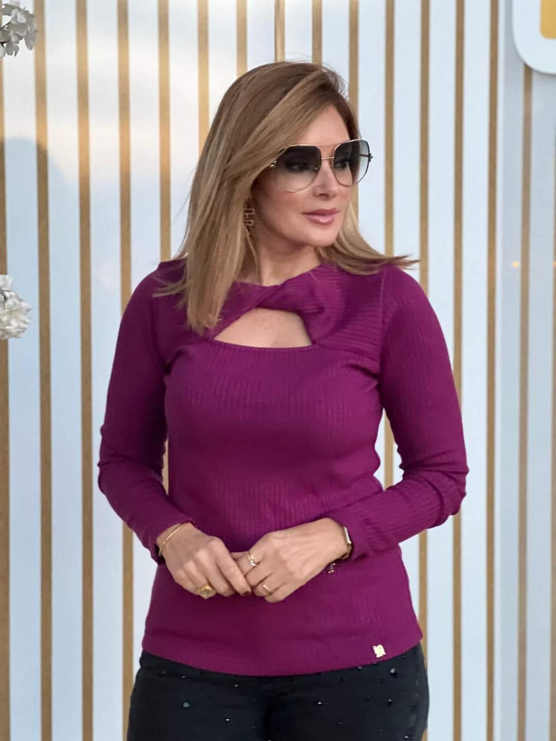 Camisola de malha canelada com trabalhado no peito