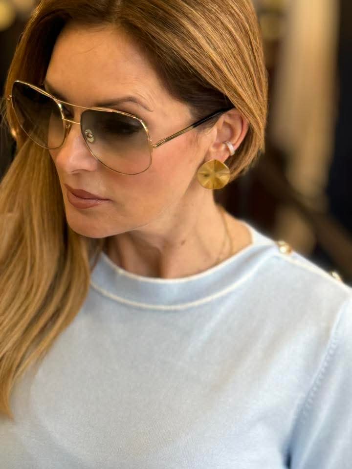 Camisola em malha de corte direito, com manga comprida e botões decorativos nos ombros e acabamentos em contraste na gola, punhos e bainha. A silhueta estruturada e o design cuidado conferem a esta peça uma versatilidade natural, adequada tanto a um ambiente profissional como a um contexto mais casual. Os toques de contraste introduzem um elemento editorial subtil, elevando a peça sem comprometer a sobriedade do conjunto. Uma escolha segura para quem procura equilíbrio entre conforto, detalhe e elegância quotidiana.