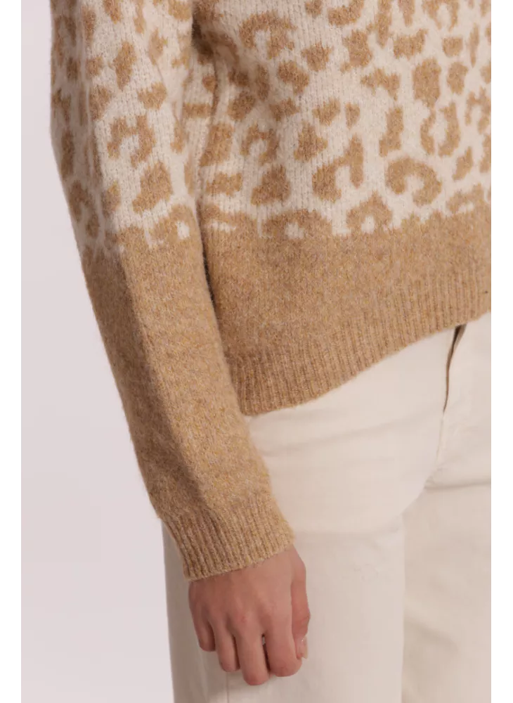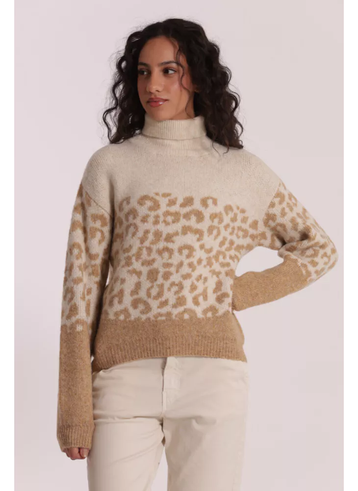 Camisola de malha Mimi Mua com gola alta, combinando conforto e estilo moderno. Apresenta detalhe de animal print em contraste, adicionando um toque arrojado e sofisticado à peça. Perfeita para looks casuais ou coordenados urbanos com personalidade.