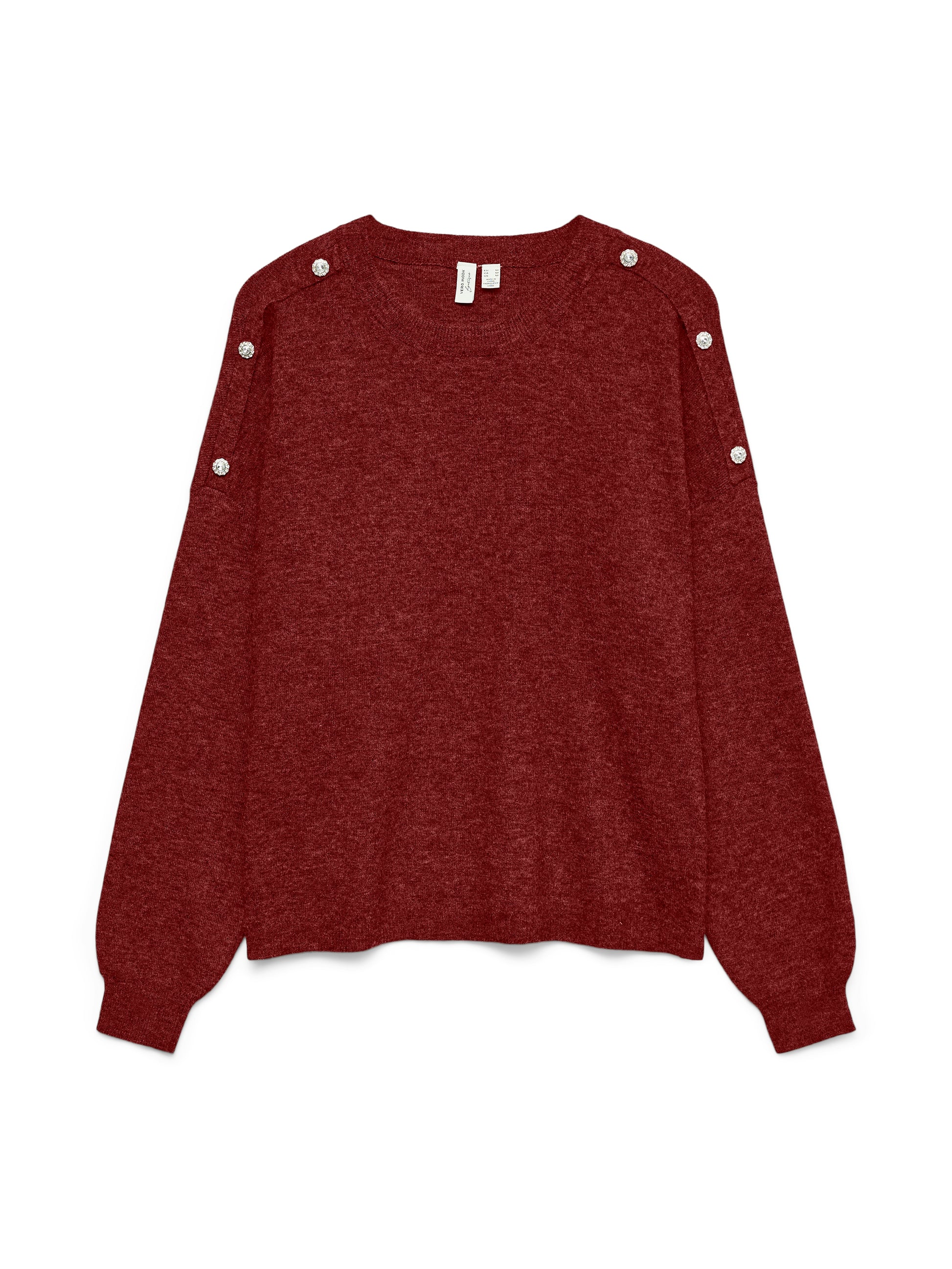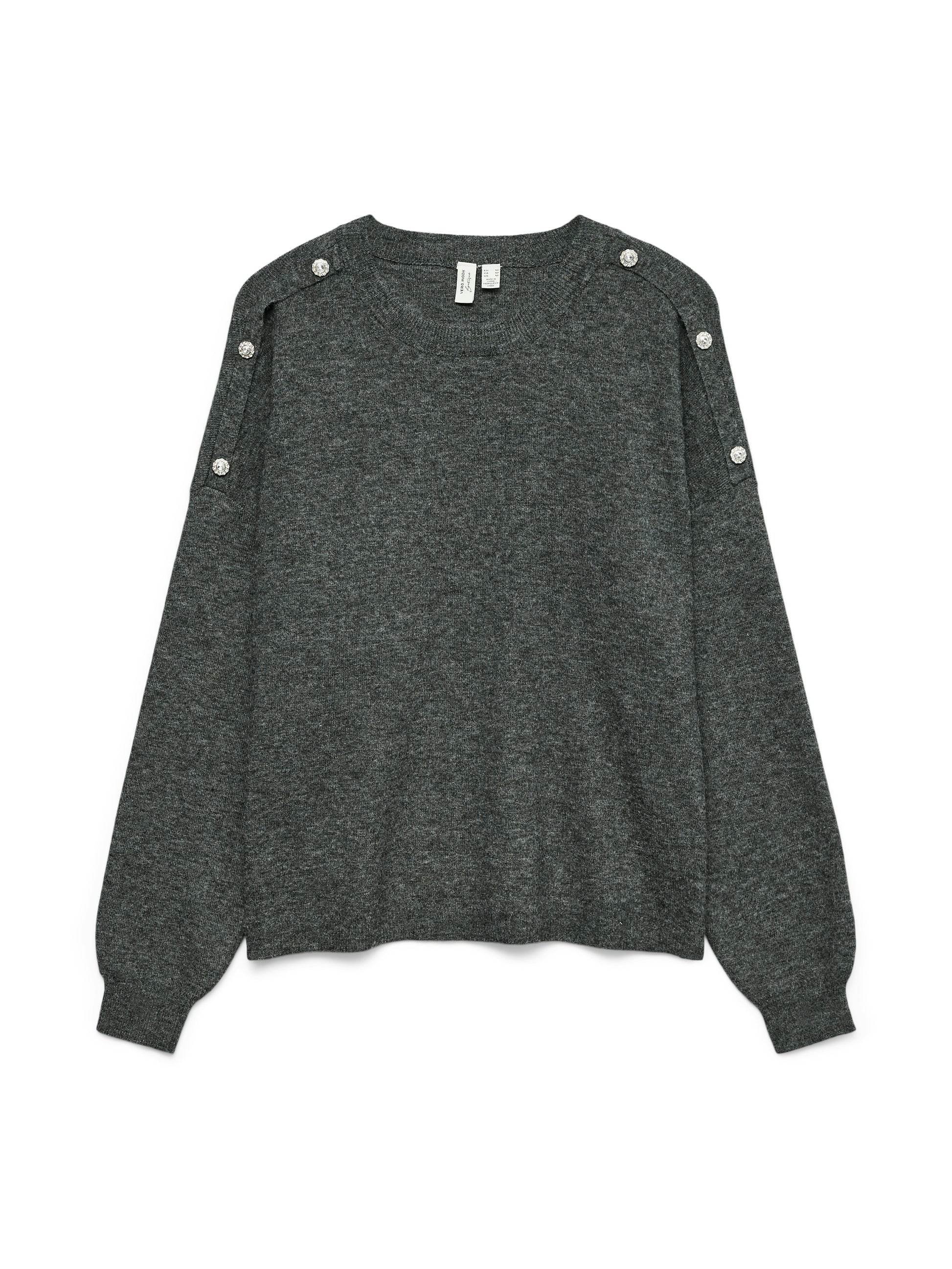Camisola de malha Vero Moda comprida, com decote redondo e manga comprida. O detalhe distinto está nos ombros, com aplicação de botões adornados com pedras brilhantes, que acrescentam um toque sofisticado e elegante ao visual. Uma peça versátil e moderna para conjugar facilmente em diferentes ocasiões.