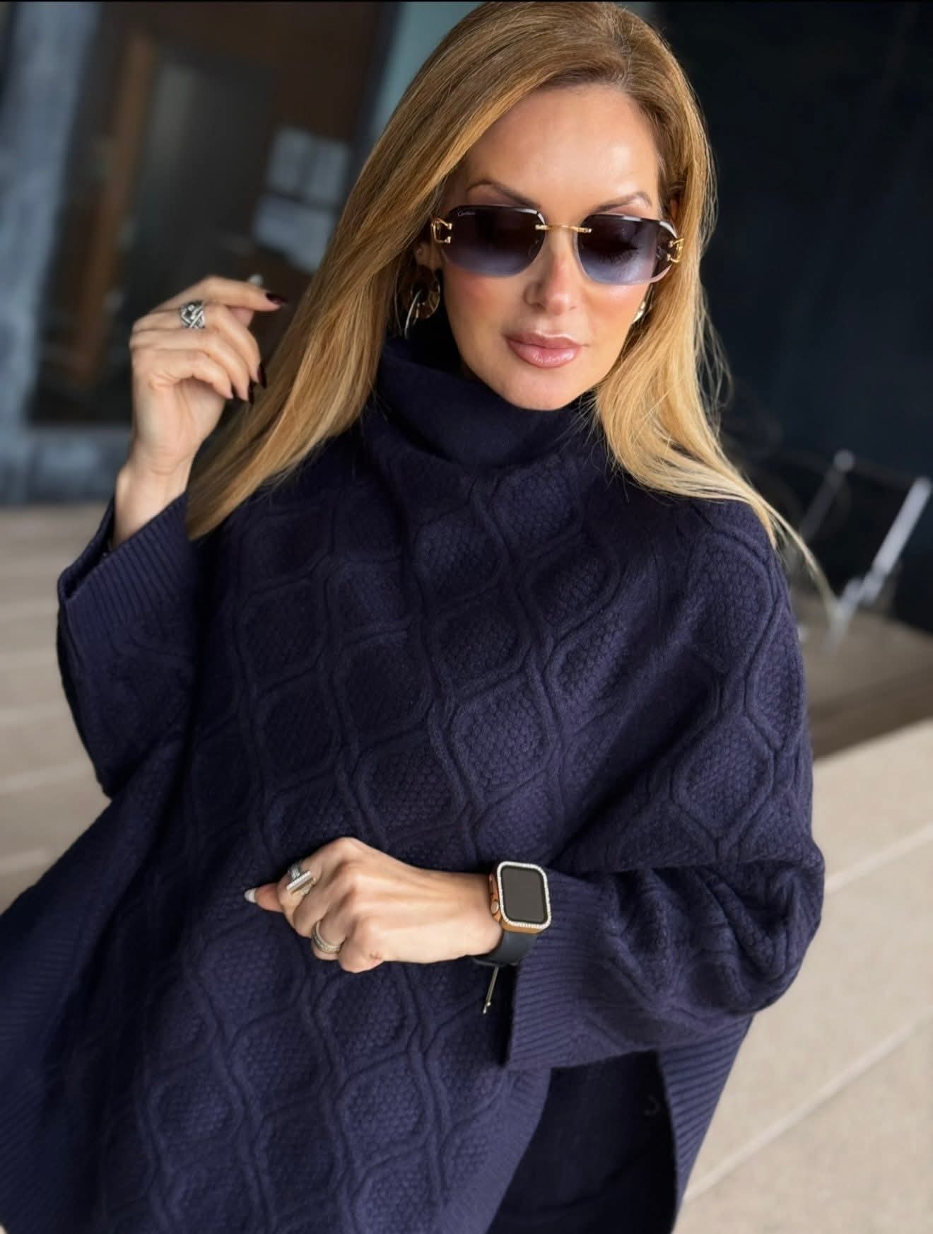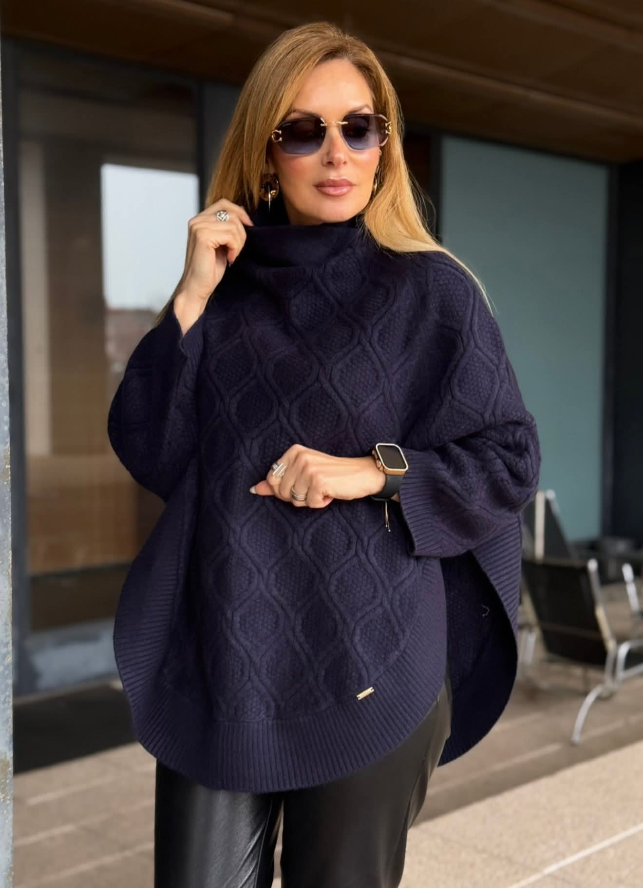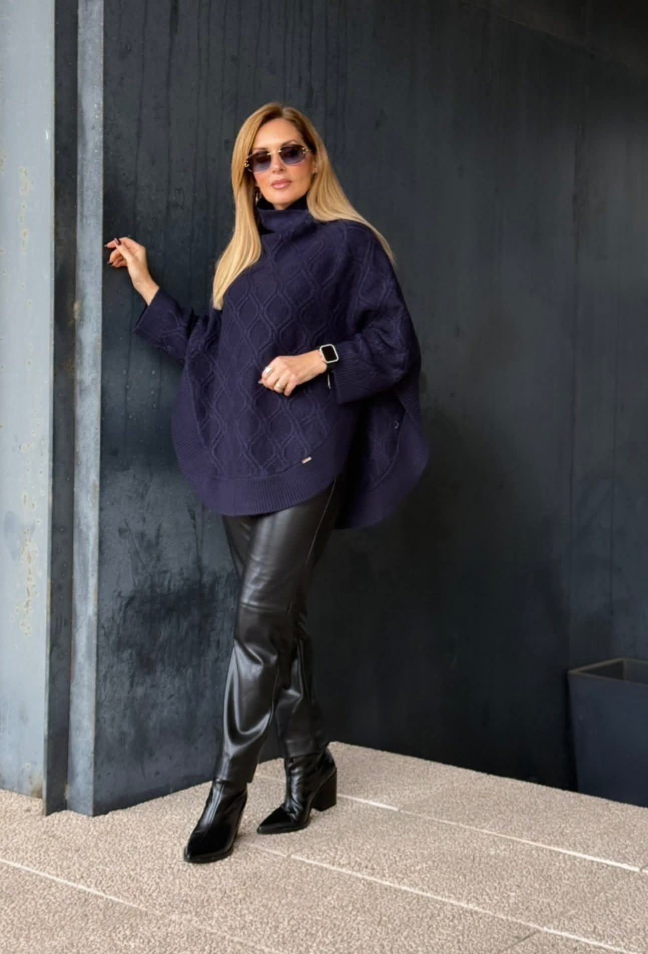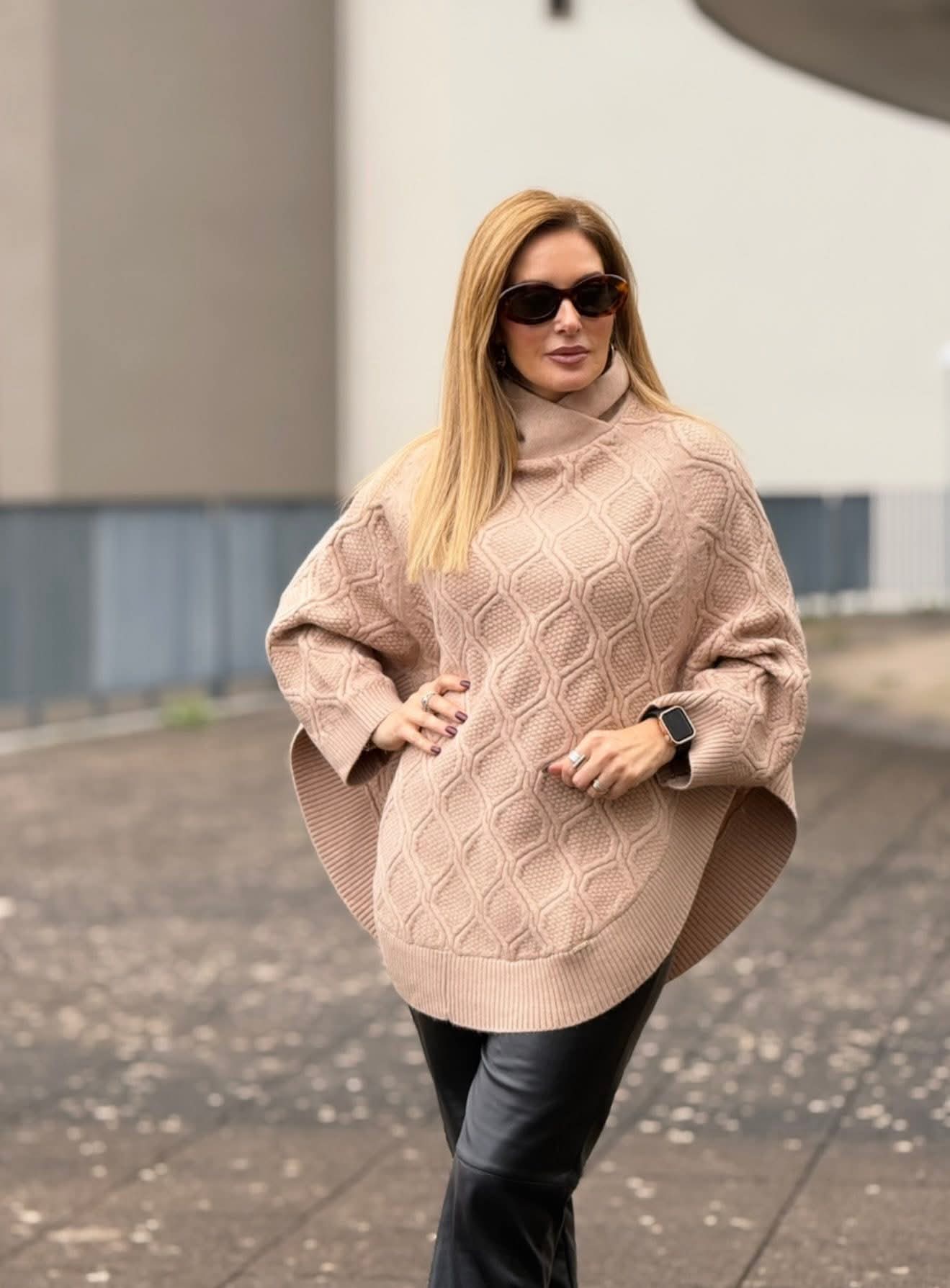Capa de malha da Ferrache com efeito trabalhado, pensada para criar um visual sofisticado e contemporâneo. O corte de estilo morcego confere fluidez e conforto, enquanto a gola subida cruzada acrescenta estrutura e elegância ao modelo. As mangas terminam em punho, com punhos e cós em malha canelada, garantindo um melhor ajuste e um acabamento cuidado. Uma peça versátil, ideal para sobrepor looks de outono e inverno com um toque distinto.