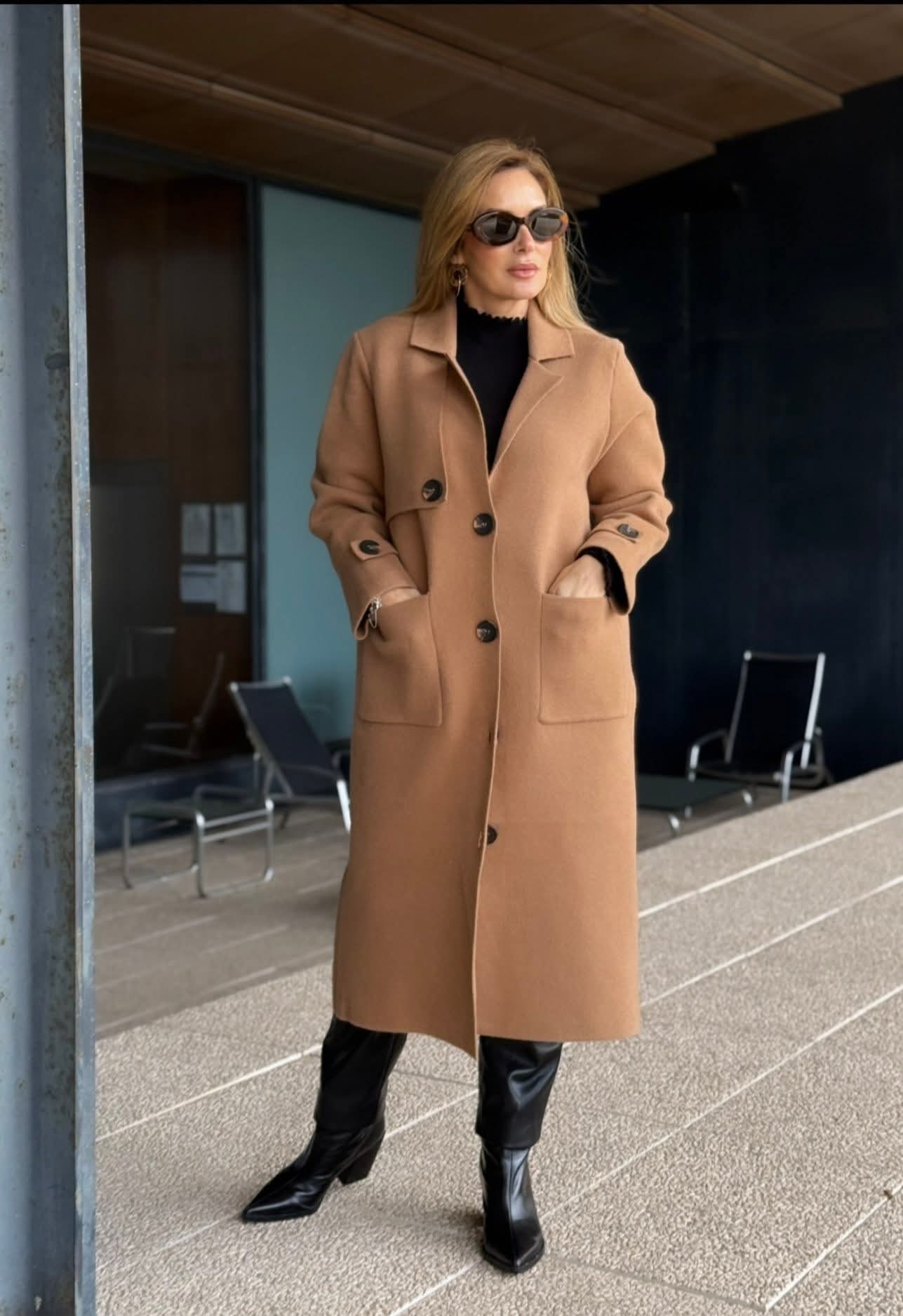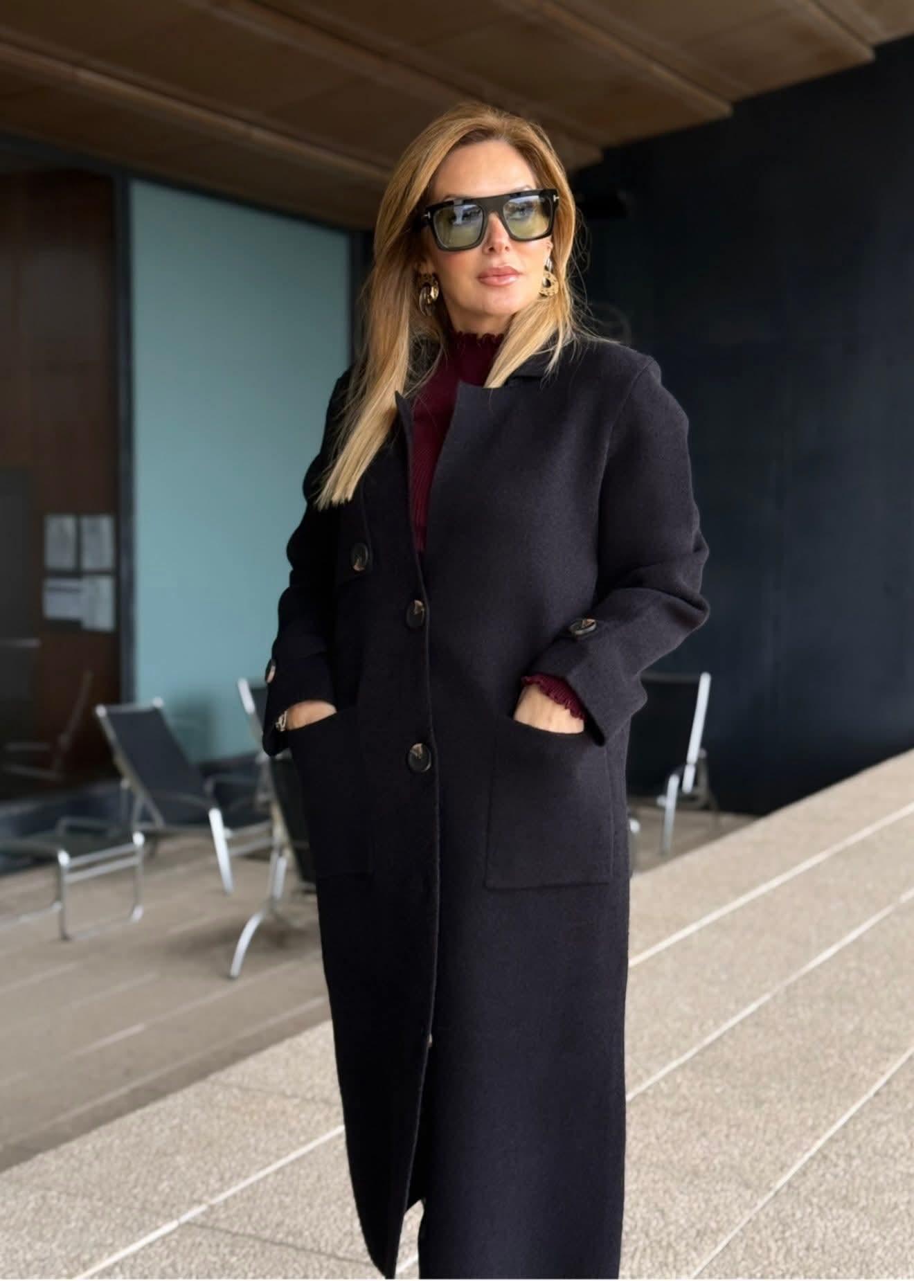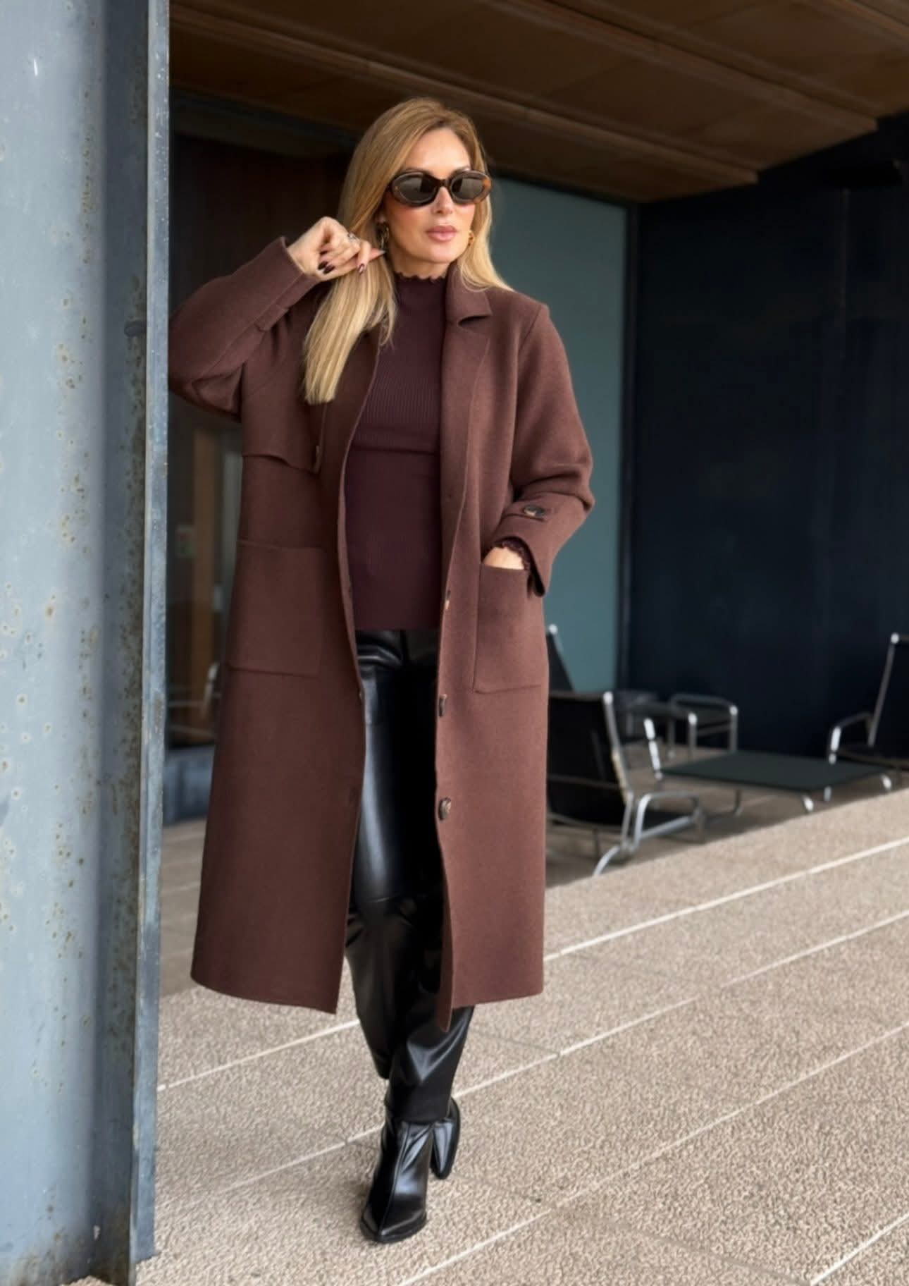 Casaco de malha comprido da Ferrache com um design elegante e intemporal. A gola clássica confere sofisticação ao modelo, enquanto o fecho frontal com botões de destaque acrescenta personalidade e detalhe. Os bolsos frontais garantem funcionalidade, complementados por abas no peito e nos punhos que reforçam o carácter estruturado da peça. Ideal para usar como sobreposição em looks de meia-estação ou em dias mais frios, combinando conforto e estilo.
