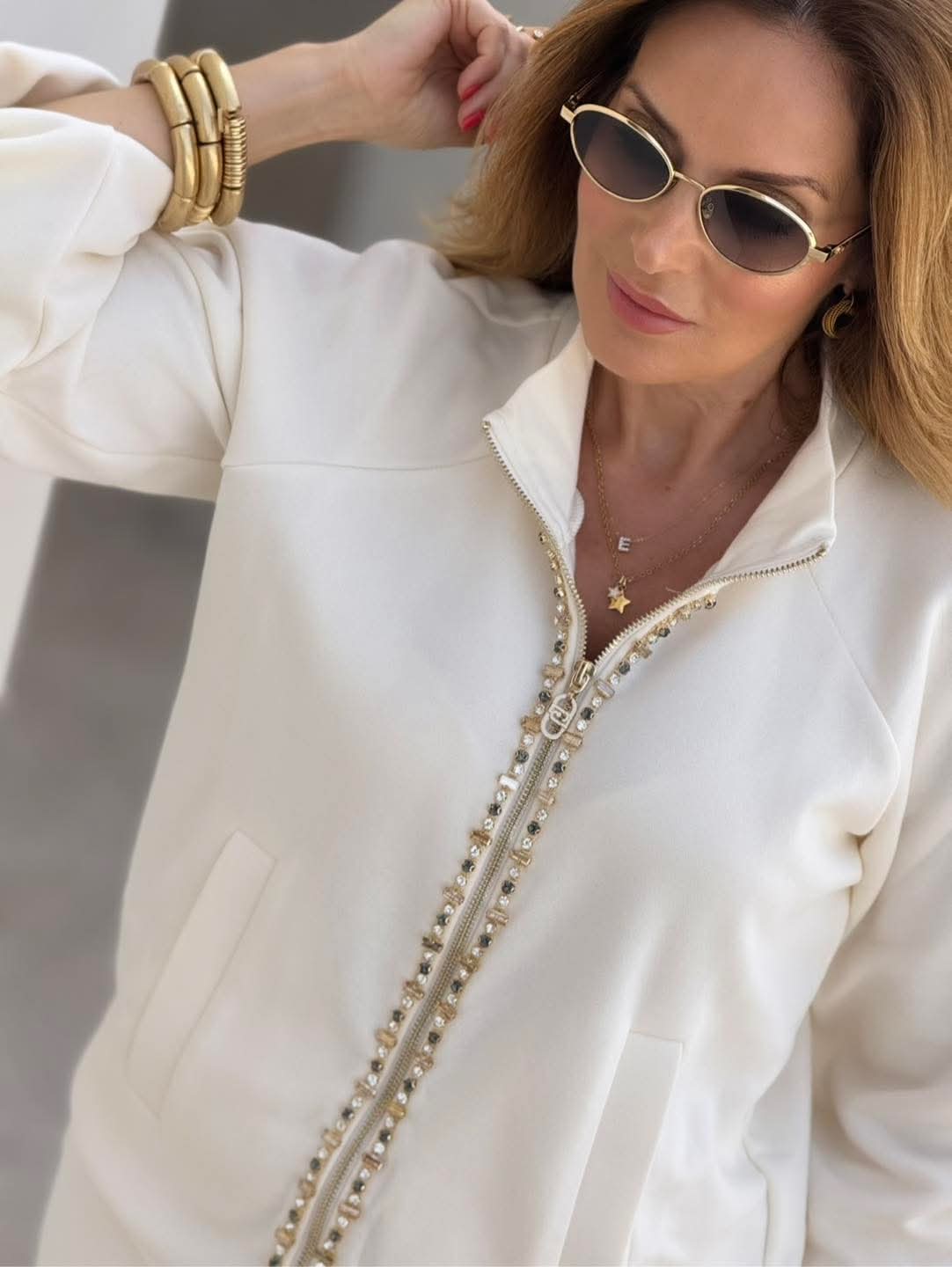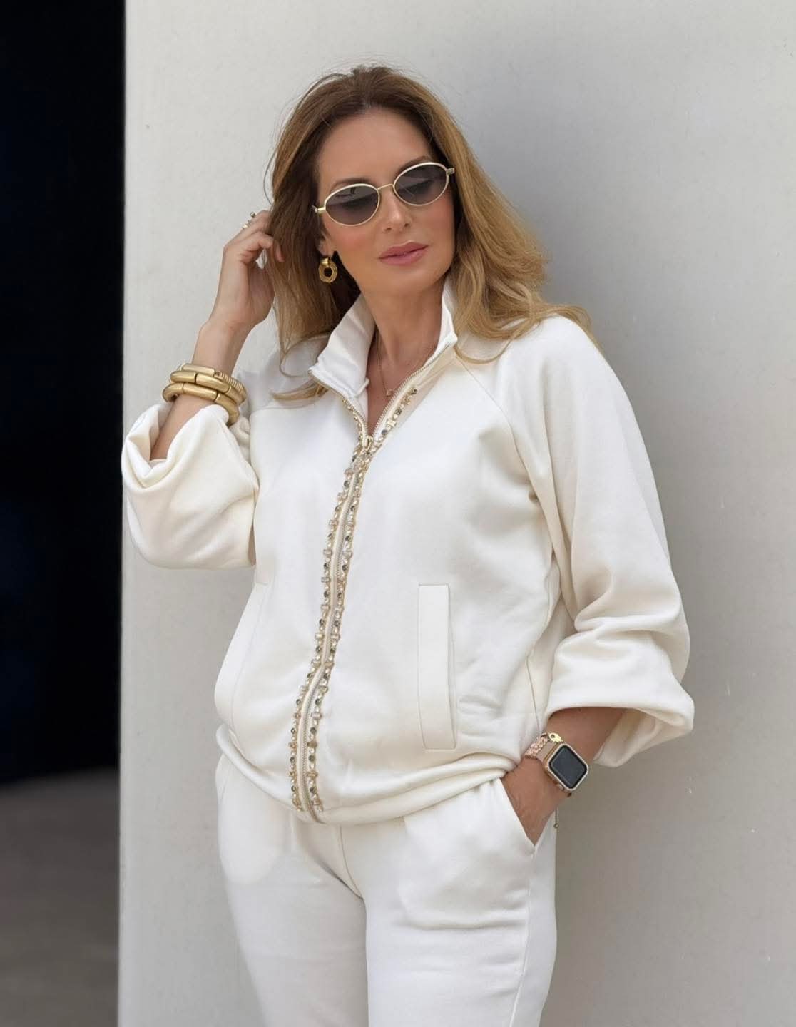 Casaco Liu Jo confeccionado em mistura de algodão, combina conforto com um toque sofisticado. O aplique de strass traz luminosidade discreta, enquanto a gola alta e as mangas longas raglan conferem modernidade ao design. Conta ainda com bolsos laterais práticos, logotipo metálico nas costas e puxador de zíper personalizado, garantindo um acabamento elegante e funcional.