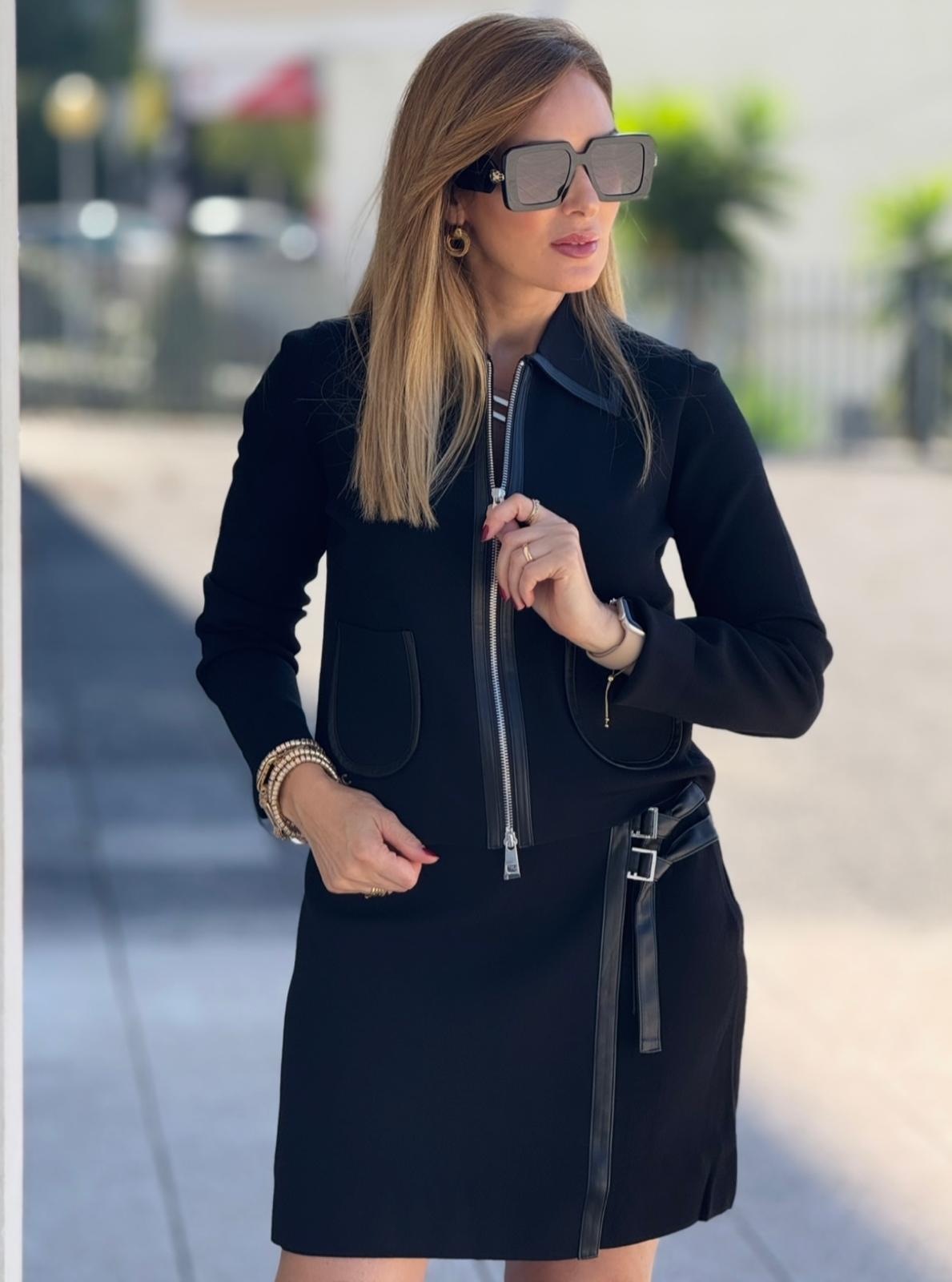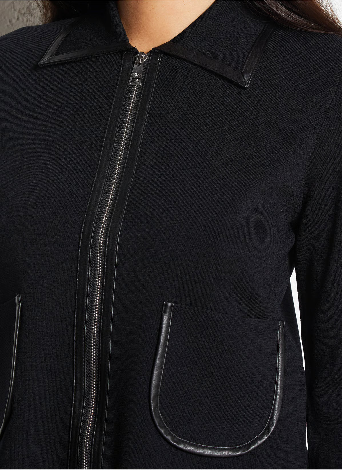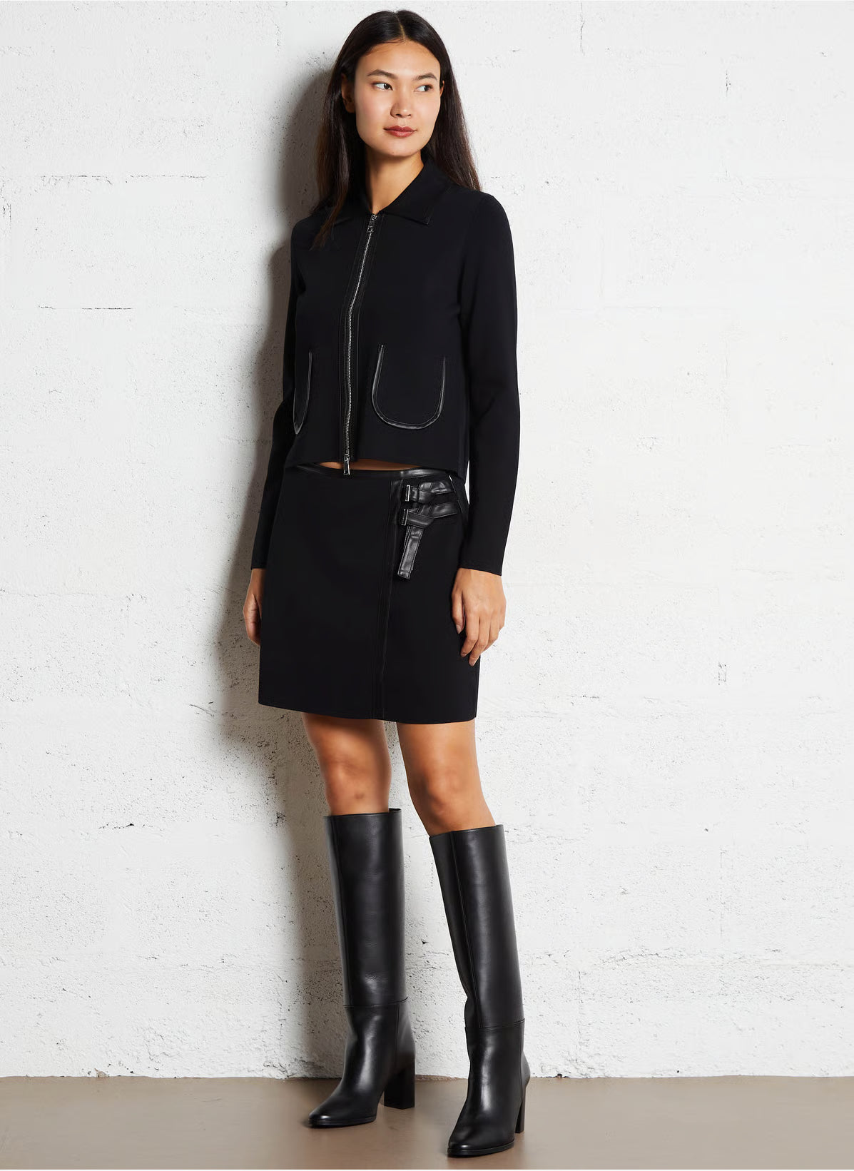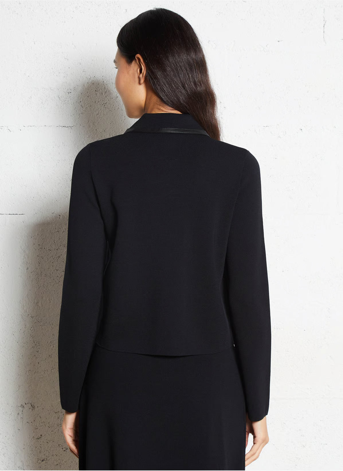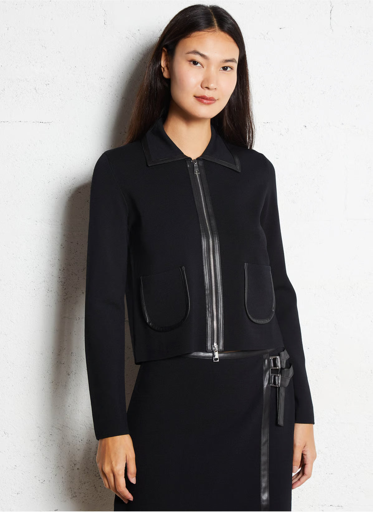 Casaco de malha Liu Jo com elegante debruado em ecopele, que valoriza o design sofisticado da peça. Modelo sem capuz, com bolsos laterais em formato U e colarinhos clássicos. O fecho em zíper confere praticidade e estilo moderno. Pode ser conjugado com a saia do mesmo tecido para um coordenado distinto e harmonioso.