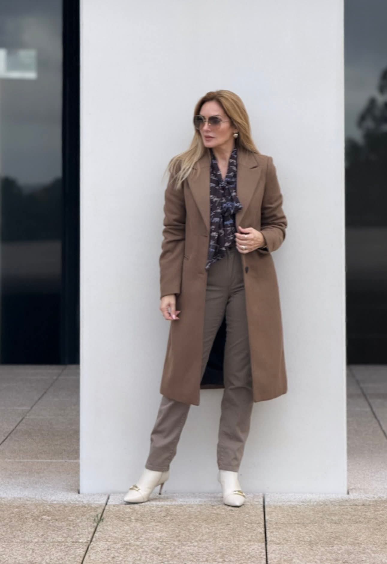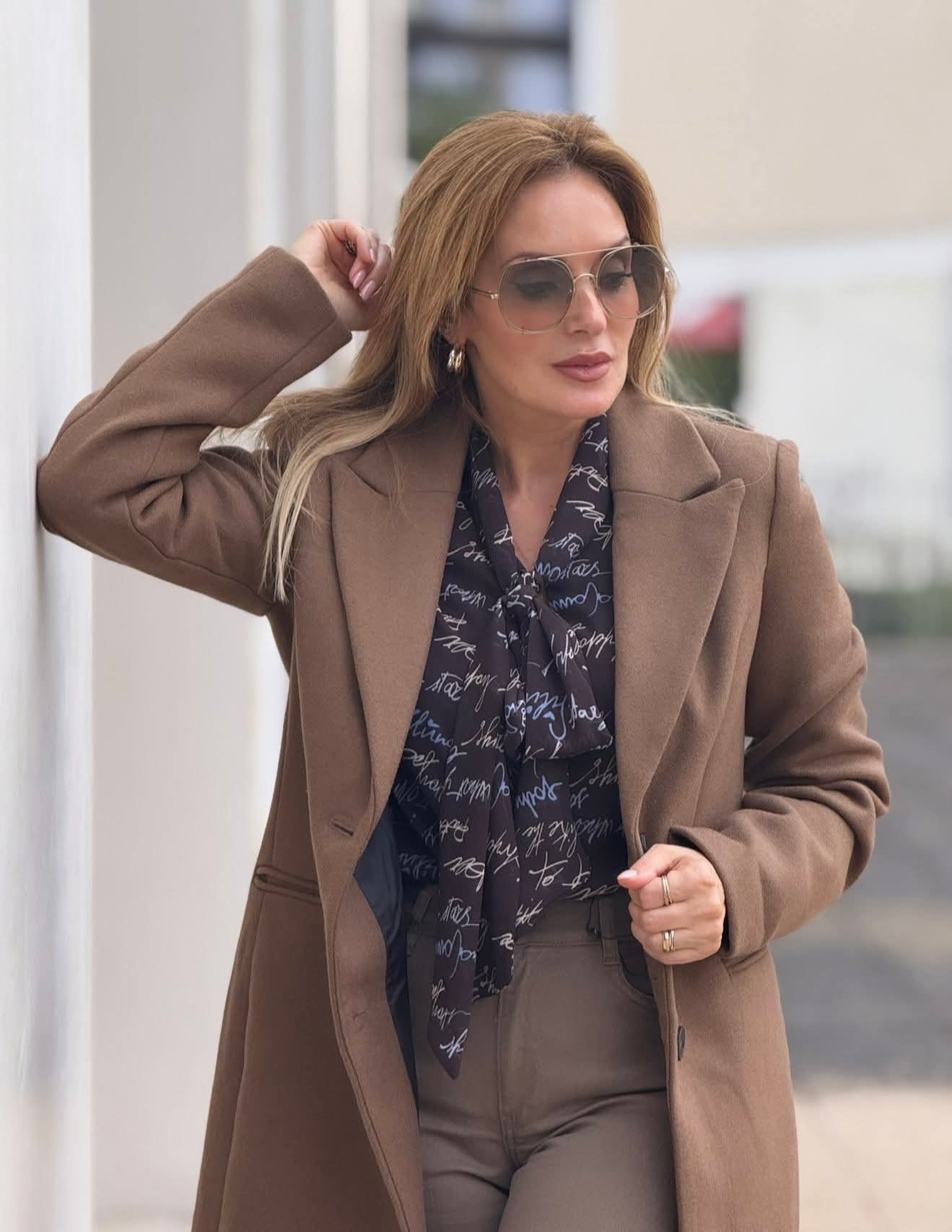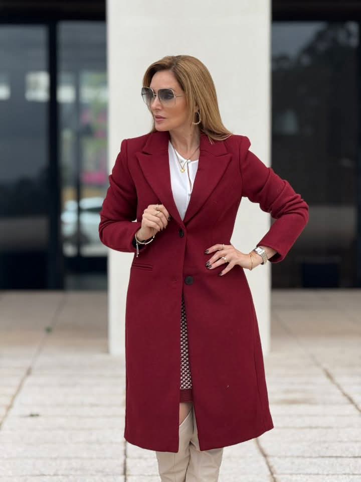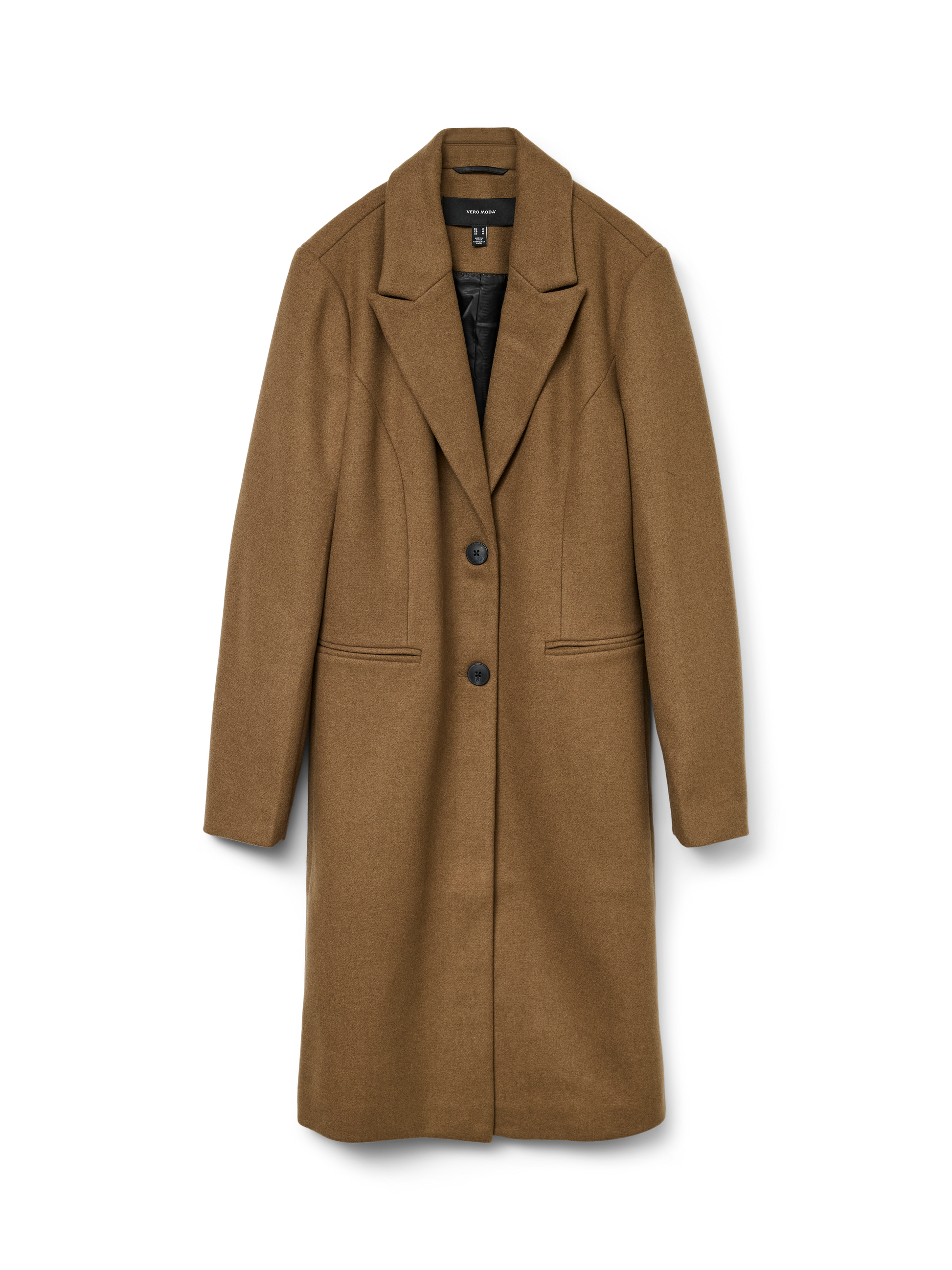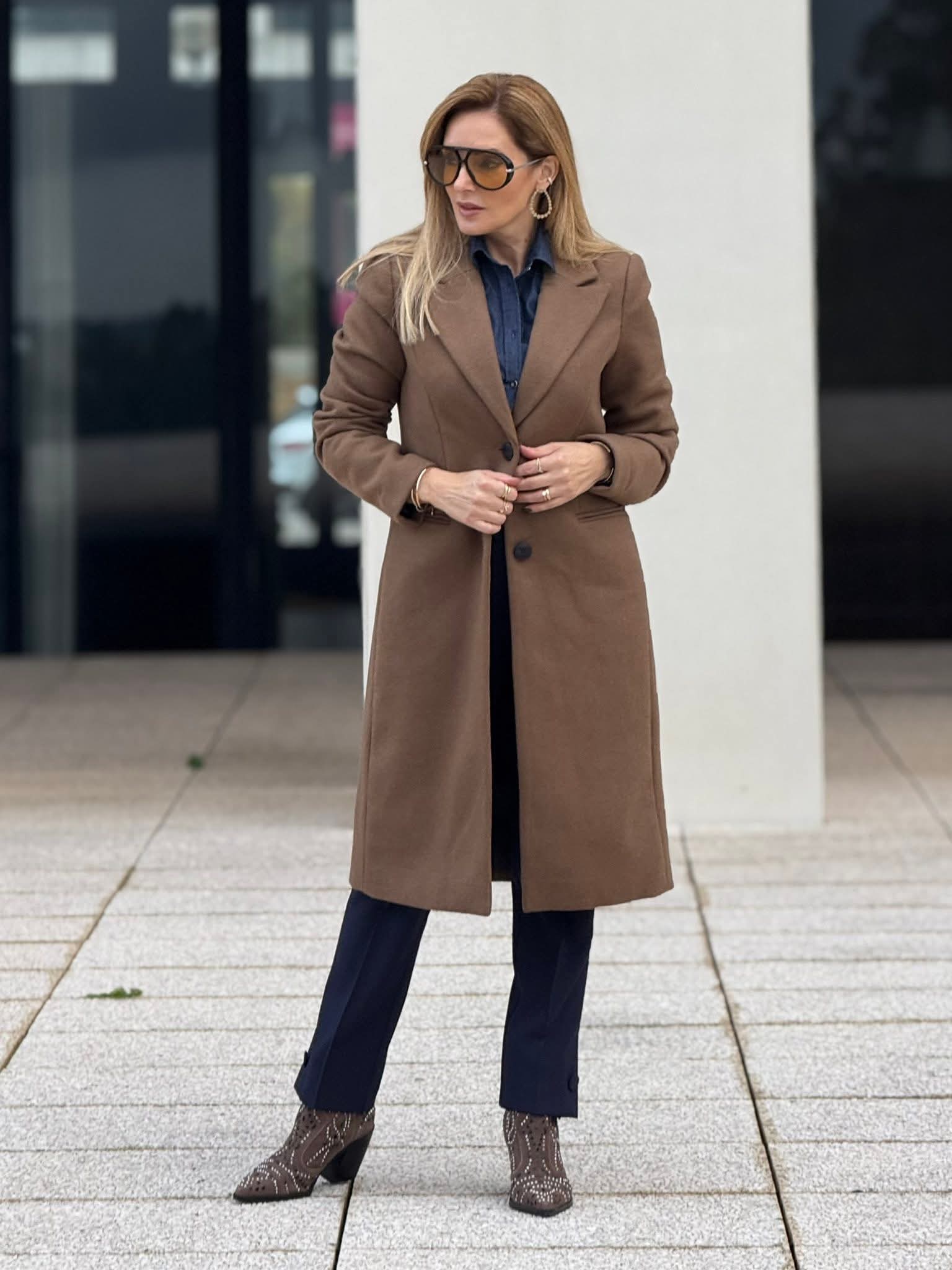 Casaco comprido Vero Moda em tecido de fazenda, com corte clássico e elegante. Apresenta lapela estruturada, fecho frontal com dois botões e bolsos horizontais funcionais. Uma peça intemporal que eleva qualquer look de outono-inverno.