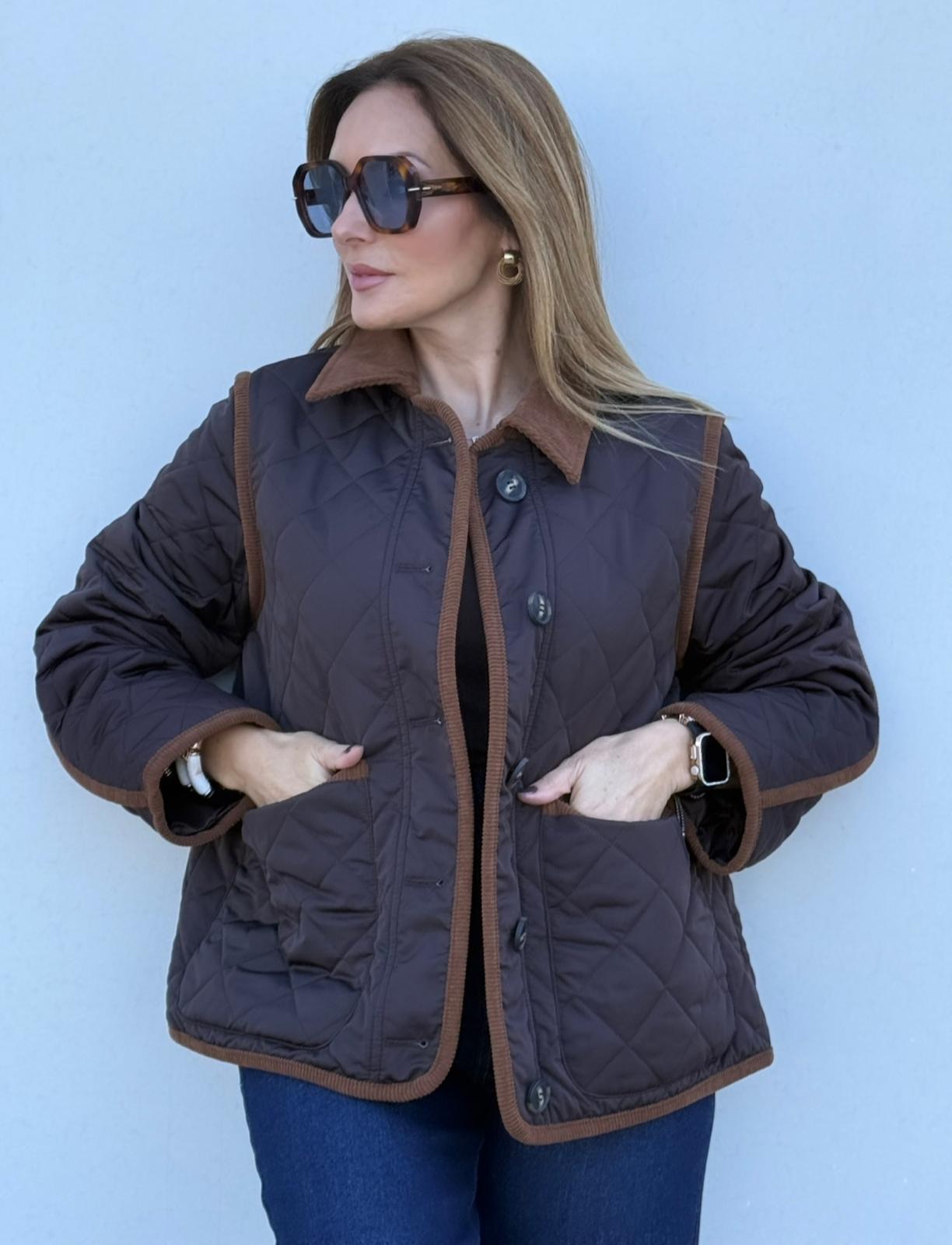 Casaco parka Vero Moda em tom chocolate, com debruado em camel que adiciona contraste elegante. Apresenta bolsos laterais de chapa, fecho de botões frontal, colarinho estruturado e design sem capuz. Uma peça versátil e moderna, ideal para coordenados casuais ou urbanos com estilo.