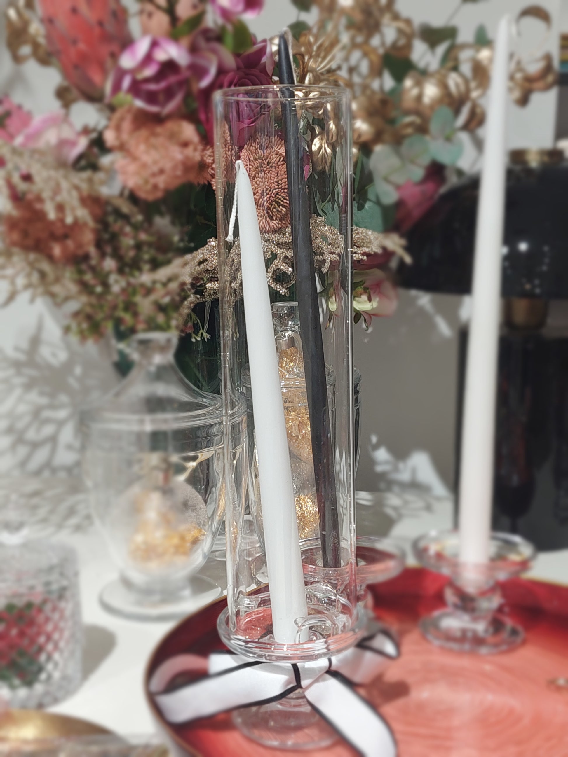 Chaminé para castiçais em vidro.