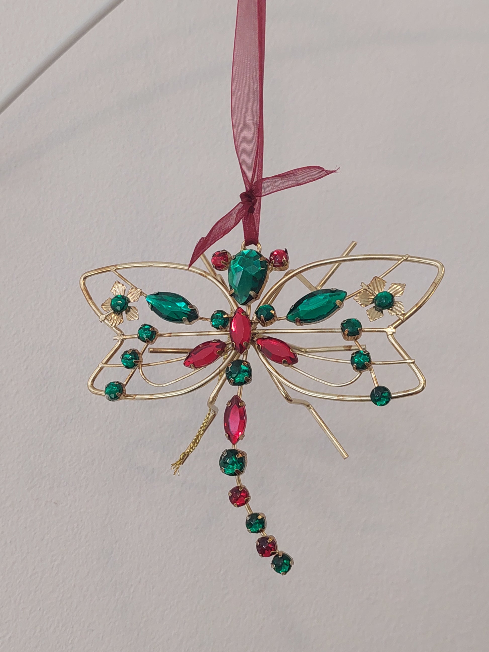 Efeito de árvore de natal. Libelinha com pedras coloridas brilhantes