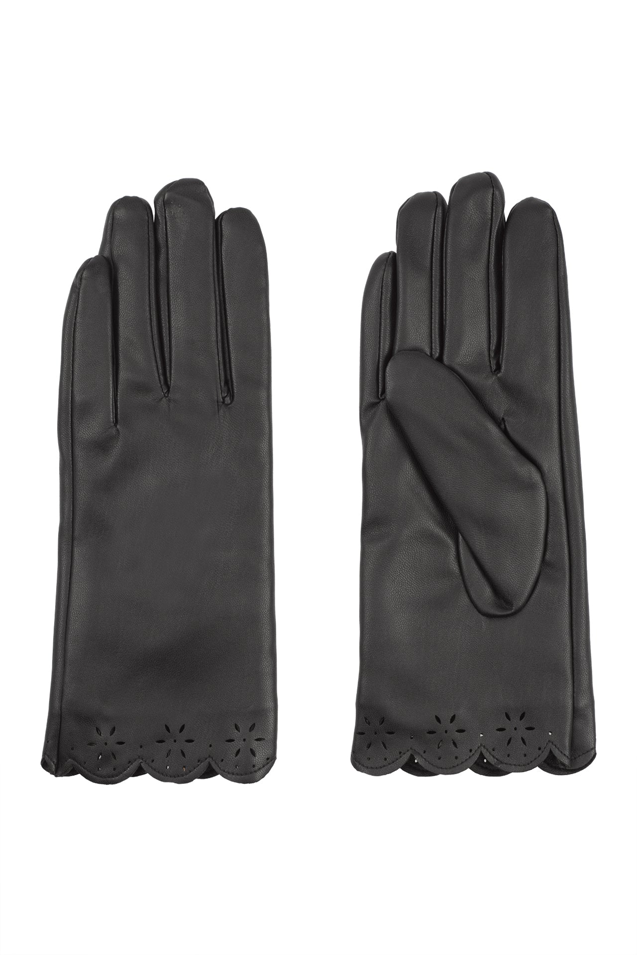 Luvas Silvina Campos em ecopele, com acabamento sofisticado em borda recortada em padrão floral. Um acessório elegante que alia estilo e funcionalidade, perfeito para complementar coordenados de inverno com um toque distinto e feminino.