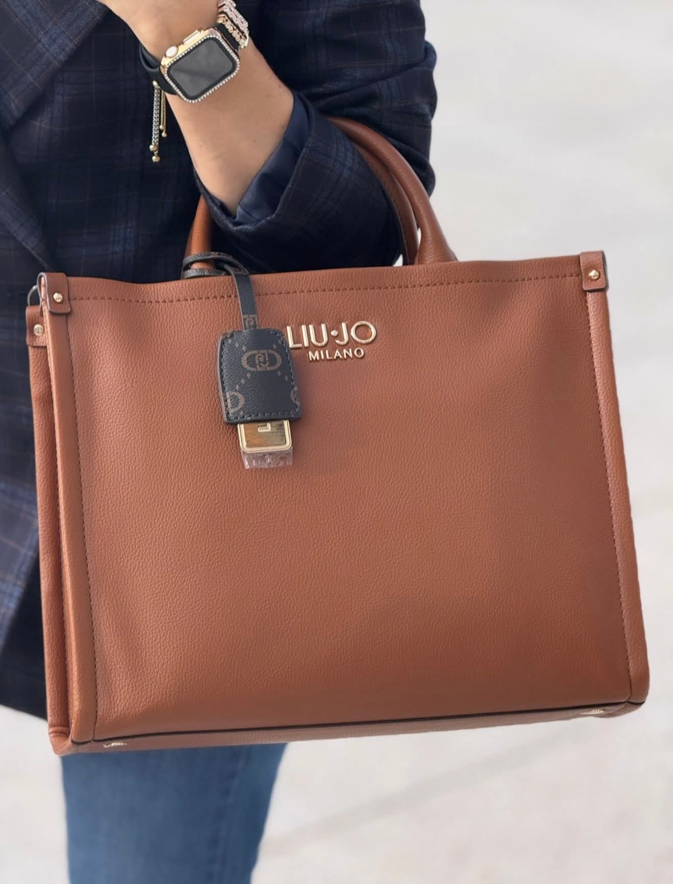 Carteira com abas Liu Jo, confeccionada em material resistente e elegante, com logotipo frontal em metal que confere sofisticação. Possui alças confortáveis e alça de ombro ajustável e removível, permitindo diferentes formas de uso. O interior é forrado com padrão de logotipo e inclui bolso interno com zíper para maior organização. Conta ainda com pingente decorativo, pés de metal na base e fecho em zíper para segurança.