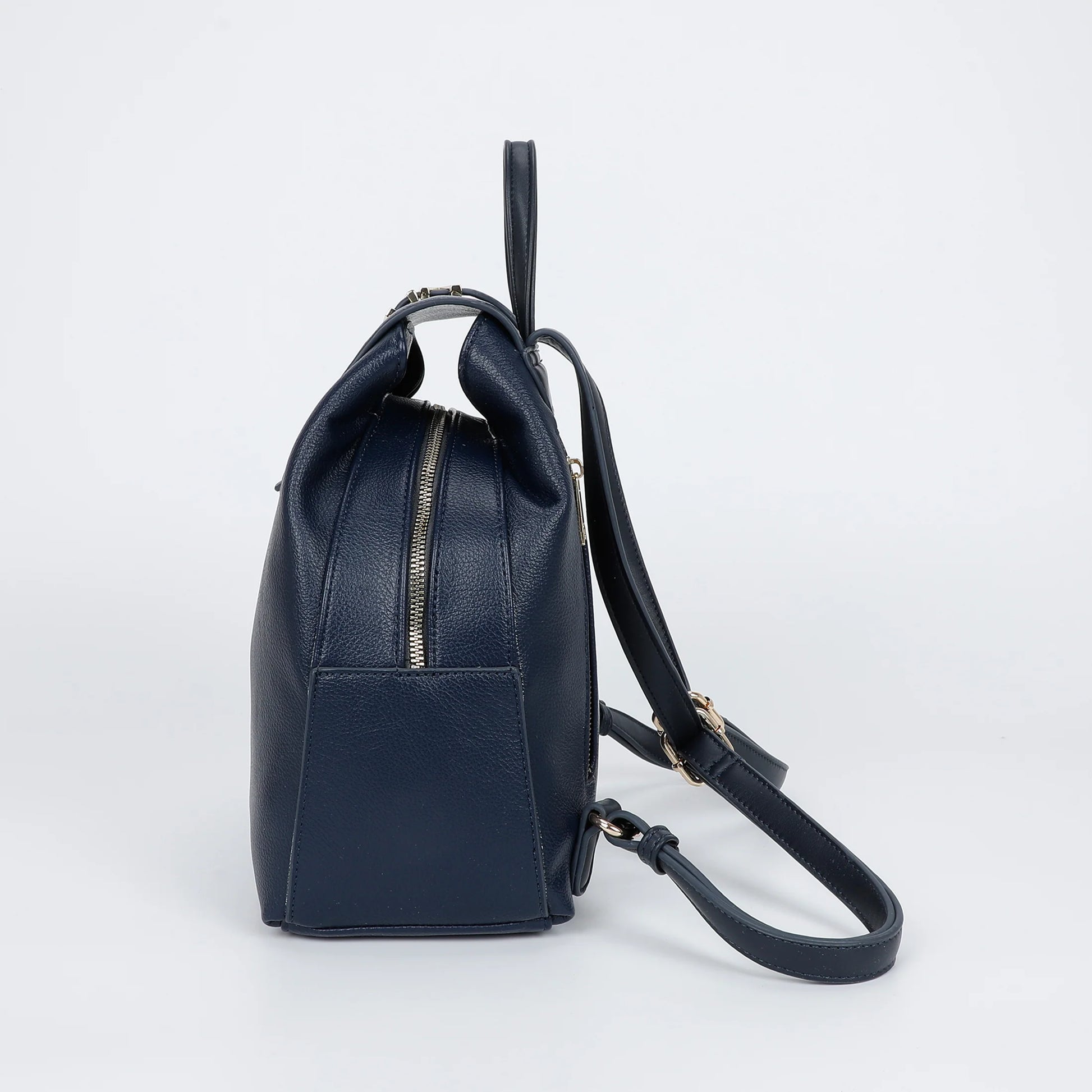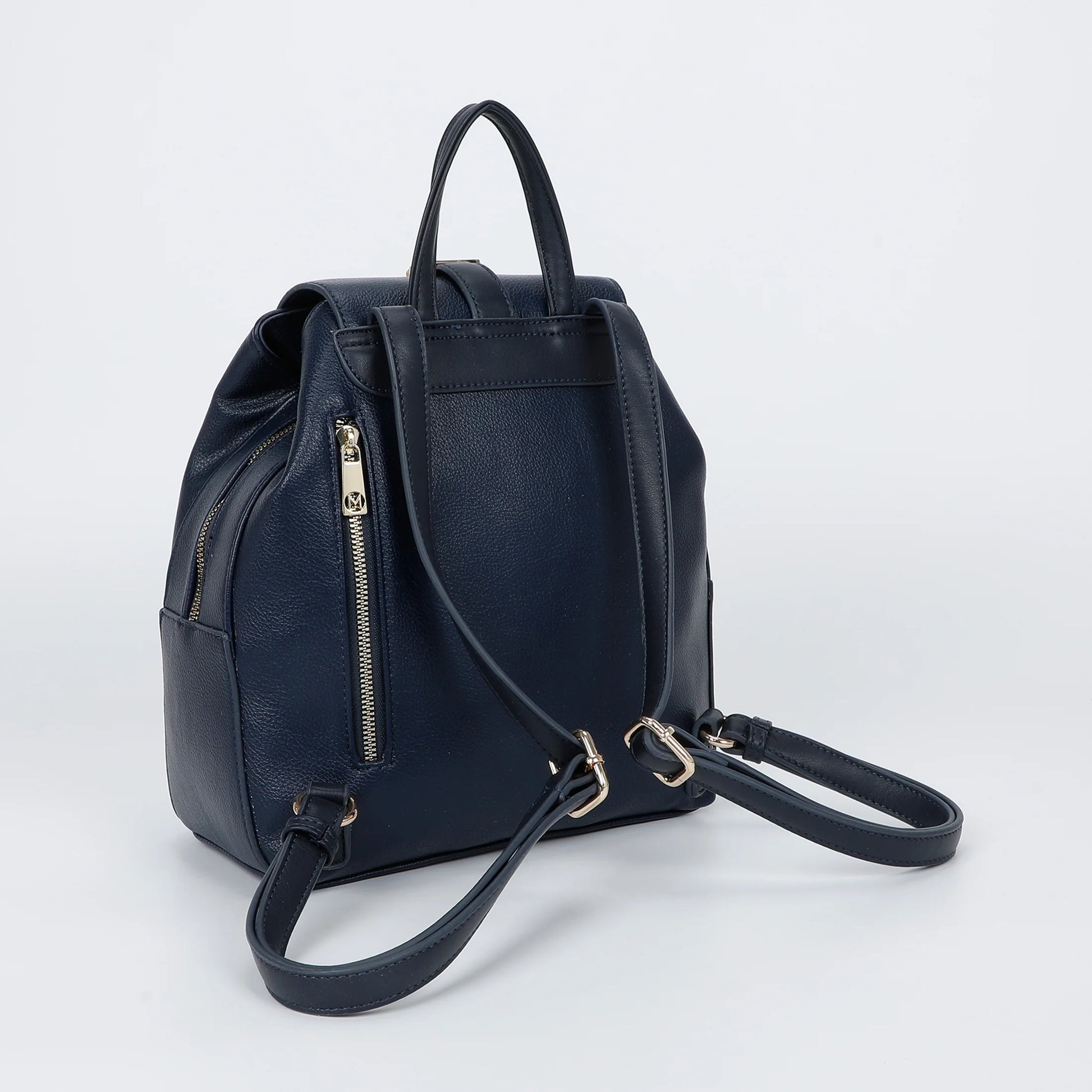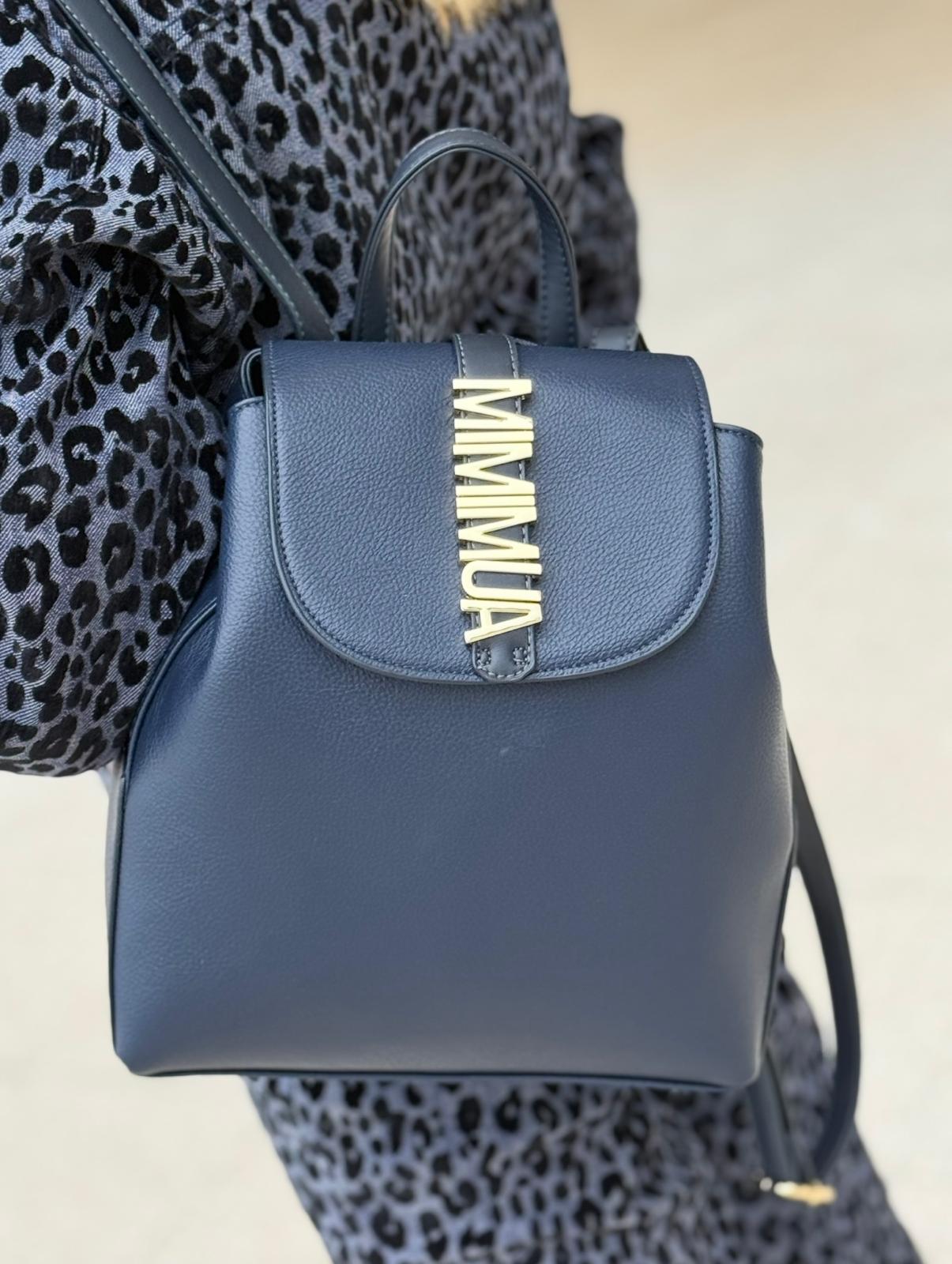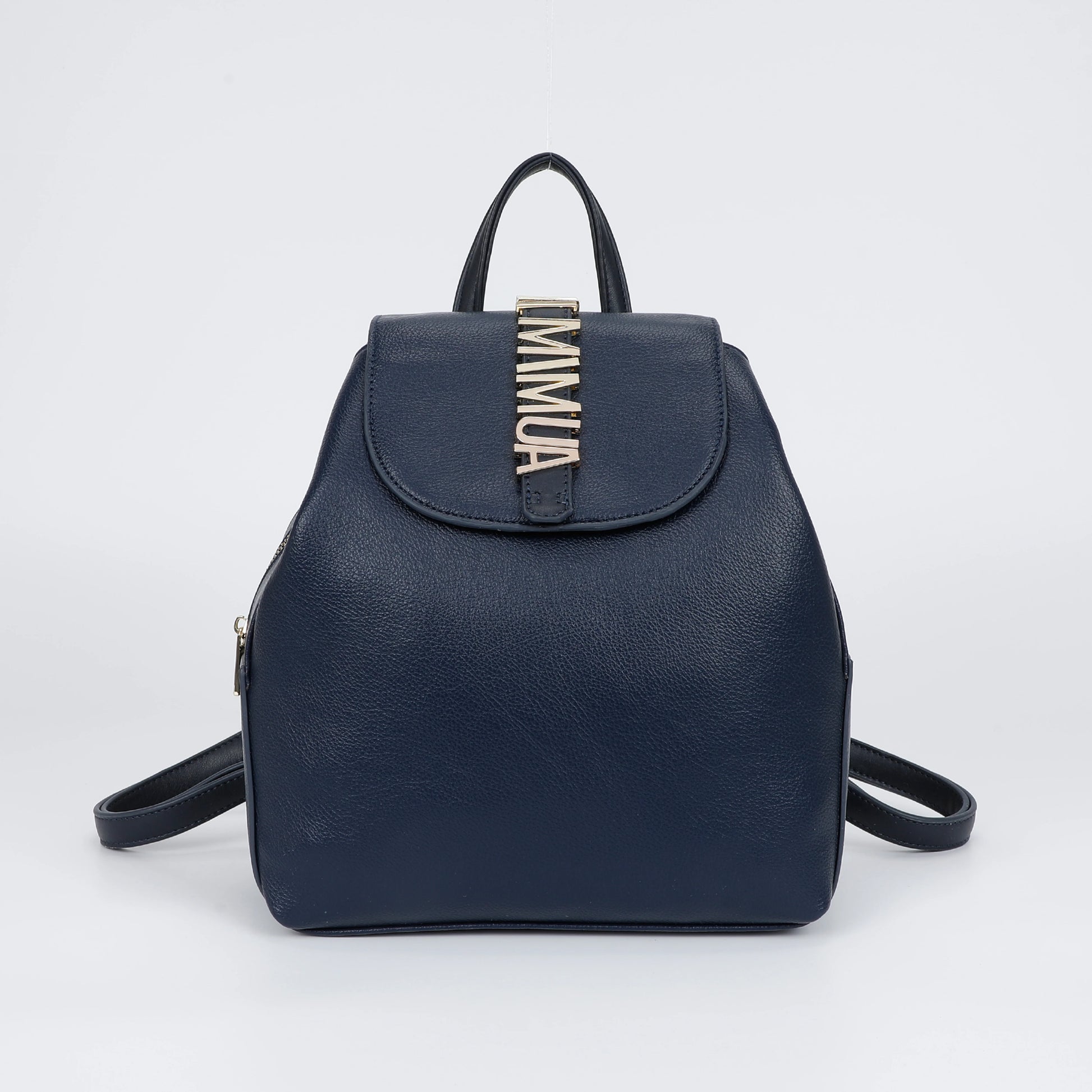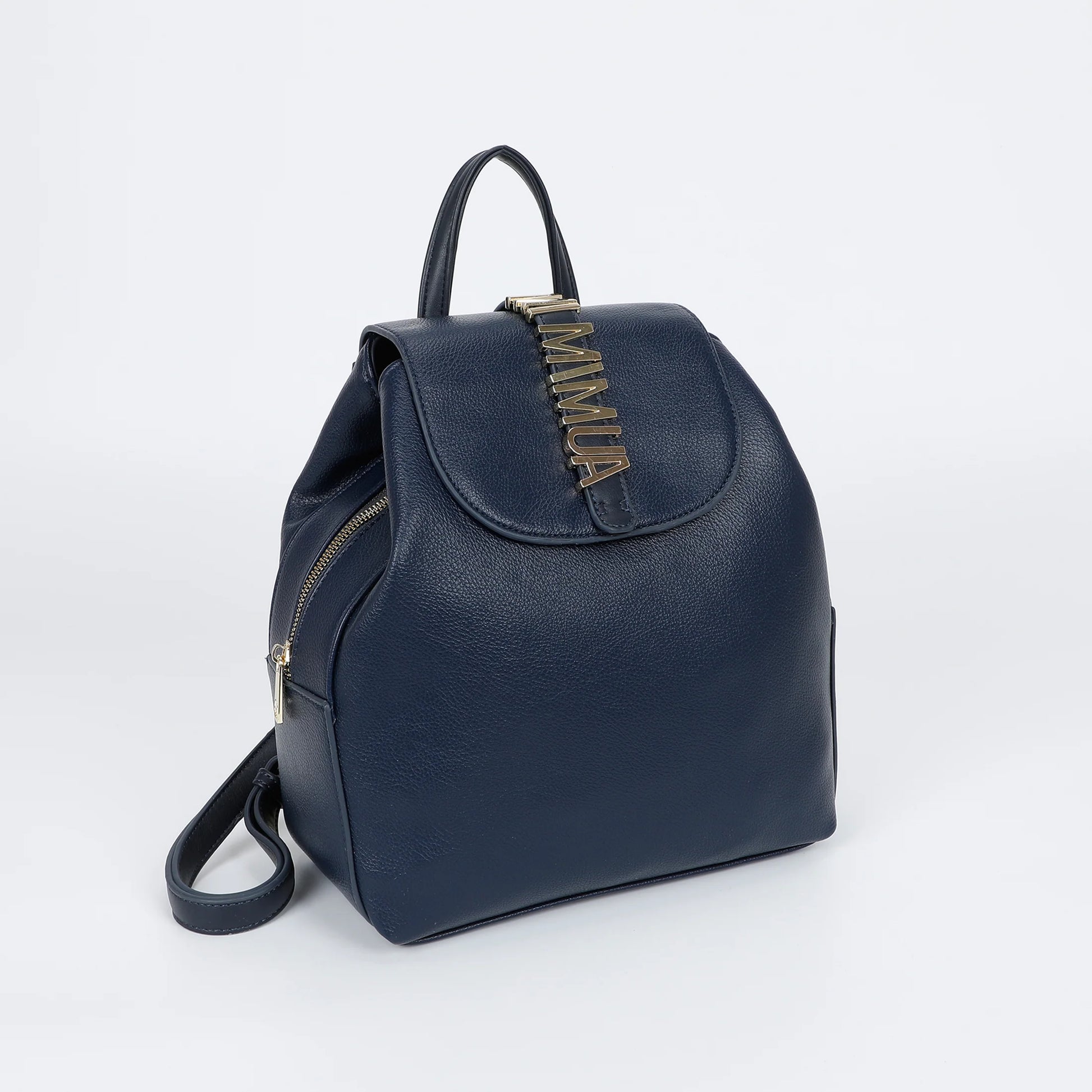 Mochila Mimi Mua com design contemporâneo, fecho de zíper e aba com letras douradas, para maior segurança dos pertences. Apresenta pequena alça de mão e zíper vertical na parte traseira, proporcionando fácil acesso e funcionalidade. Um modelo prático e elegante, ideal para uso diário com estilo.