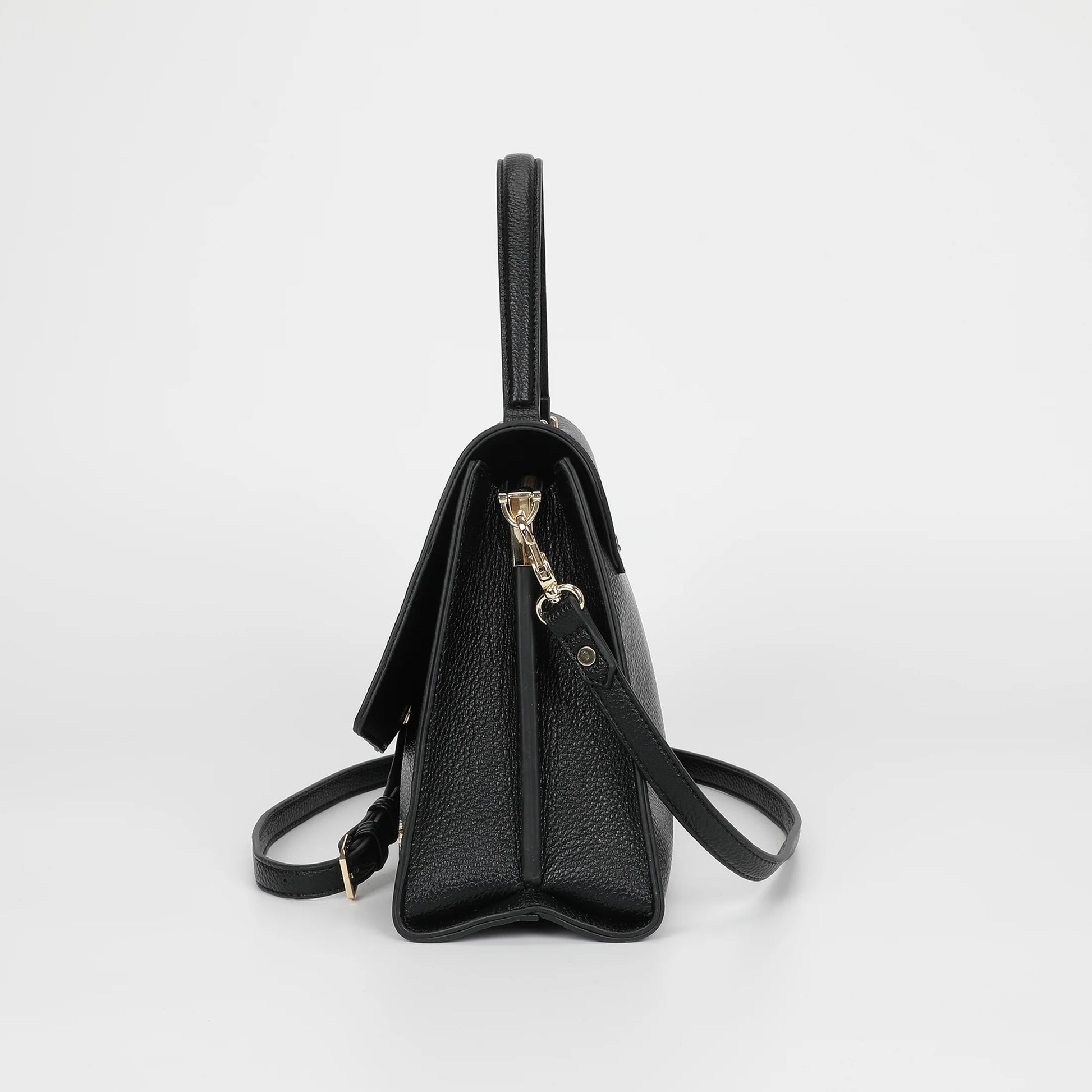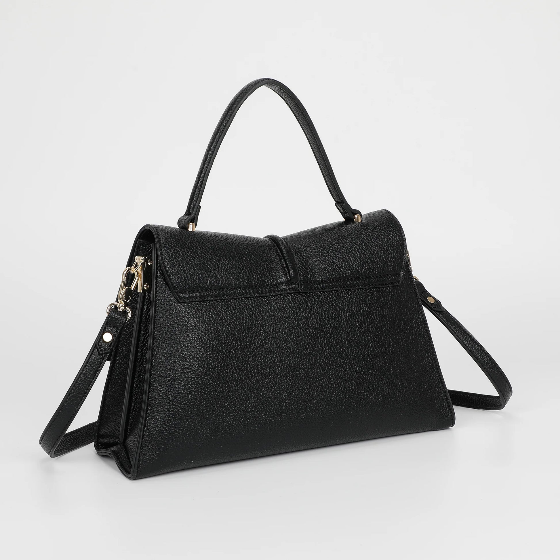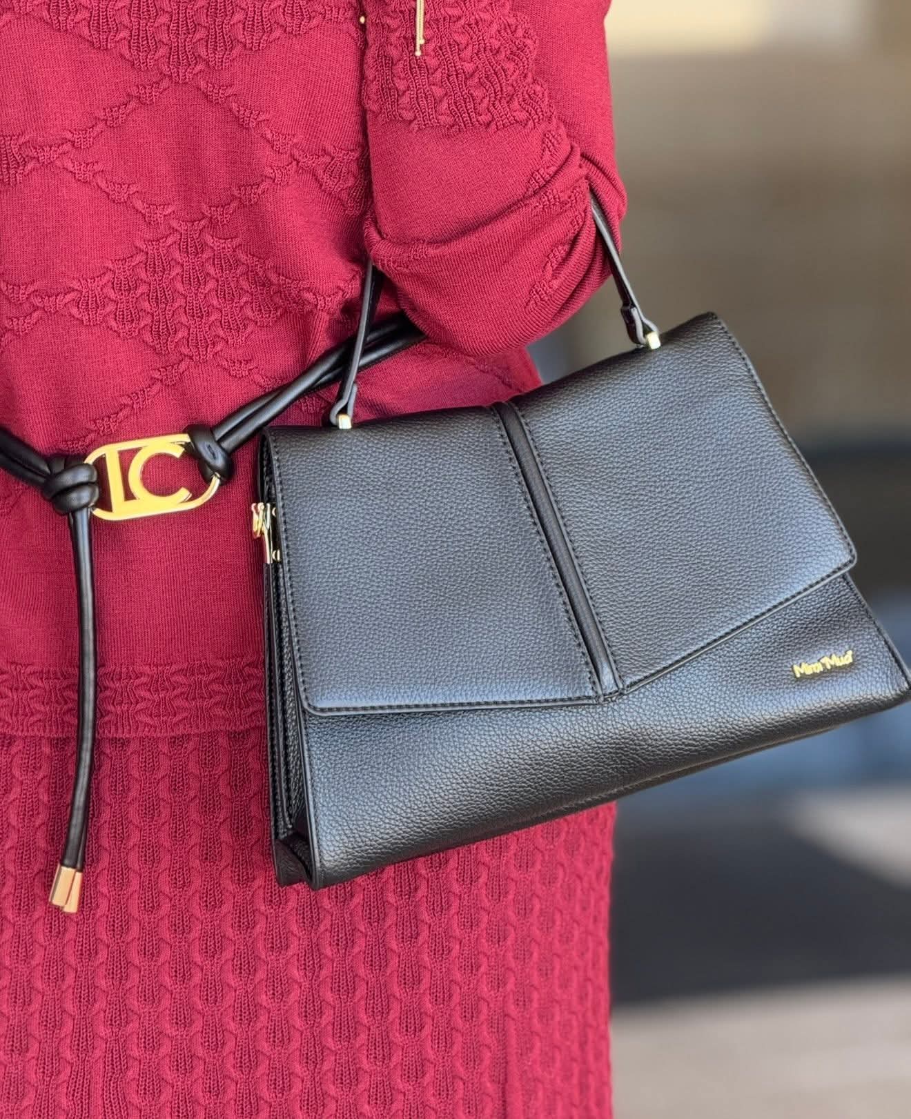 Mala estruturada Mimi Mua, versátil e prática, com alça de mão e alça de ombro removível. Apresenta aba ampla com fecho de íman e três divisórias internas, incluindo uma com fecho de zíper, garantindo organização e funcionalidade sem perder a elegância. Um acessório ideal para looks do dia a dia ou ocasiões especiais.