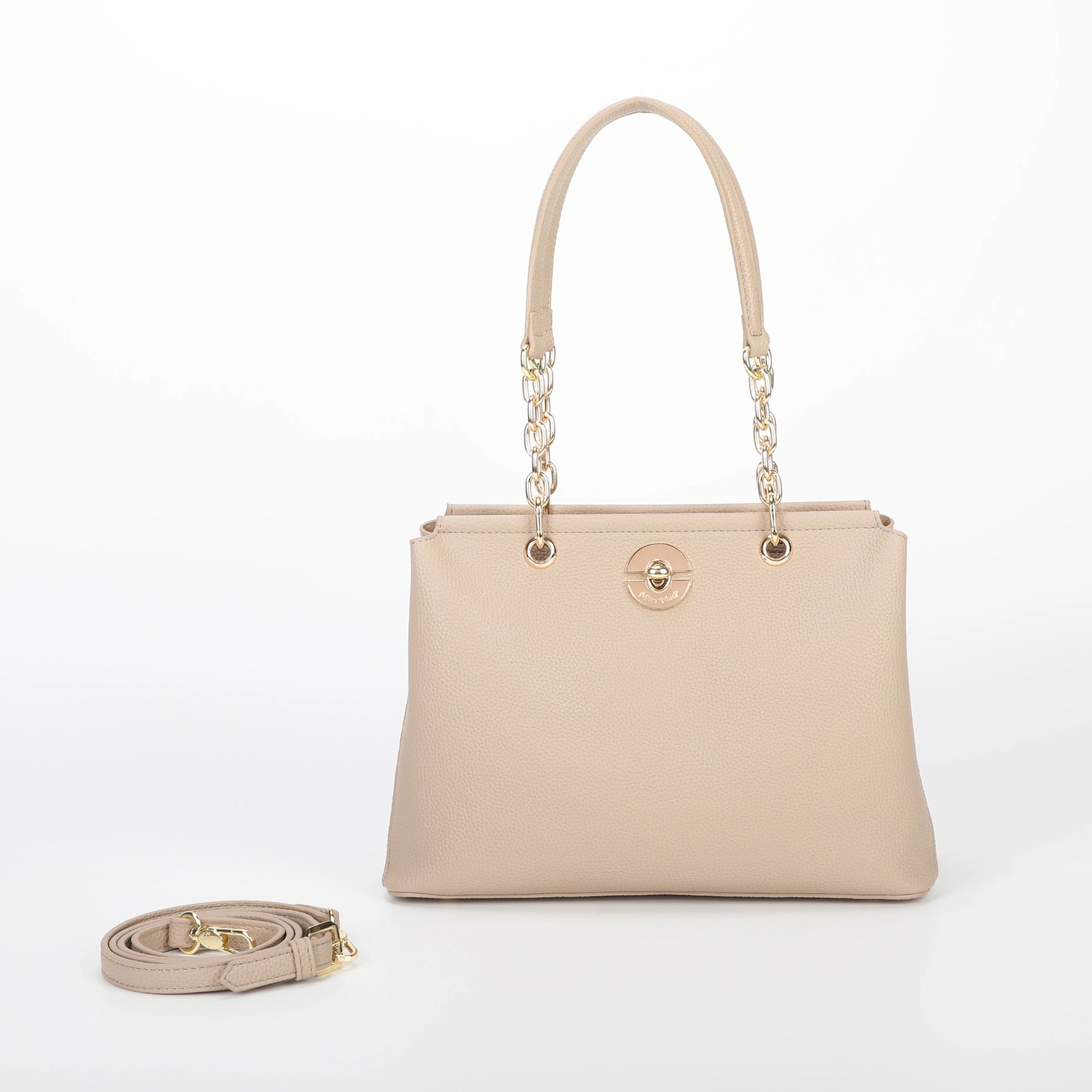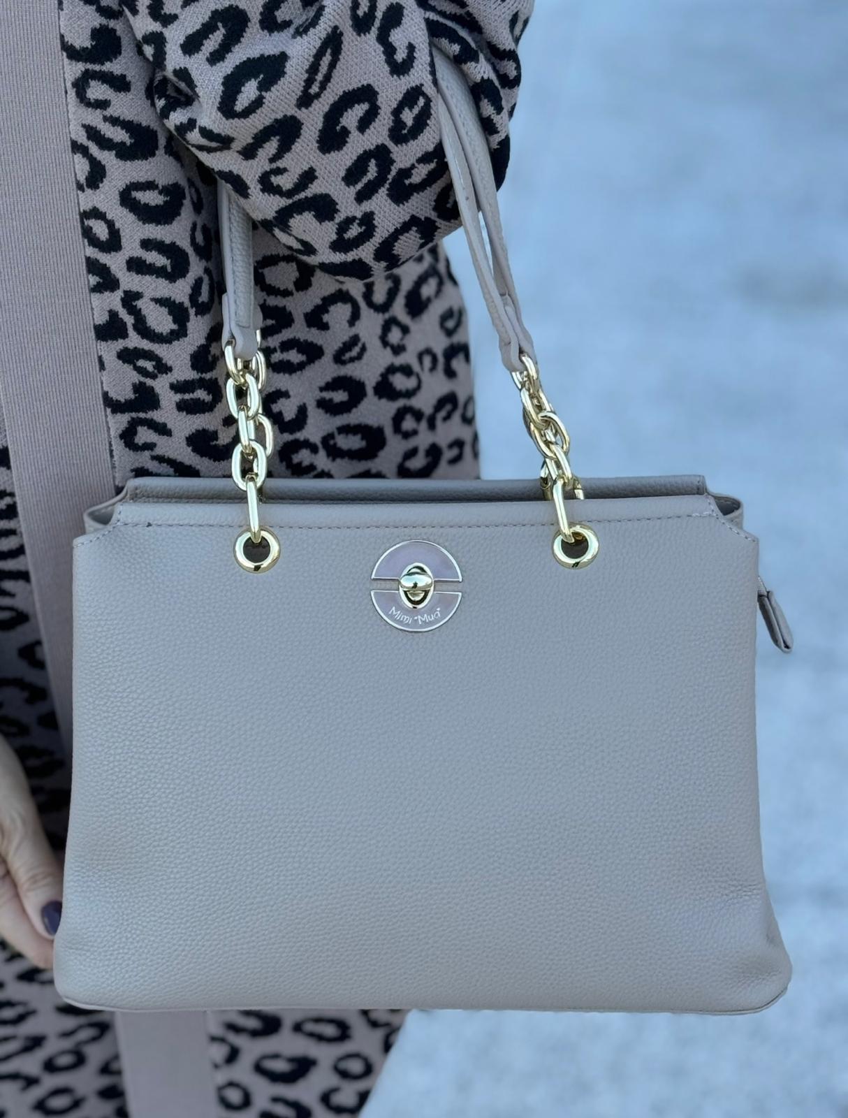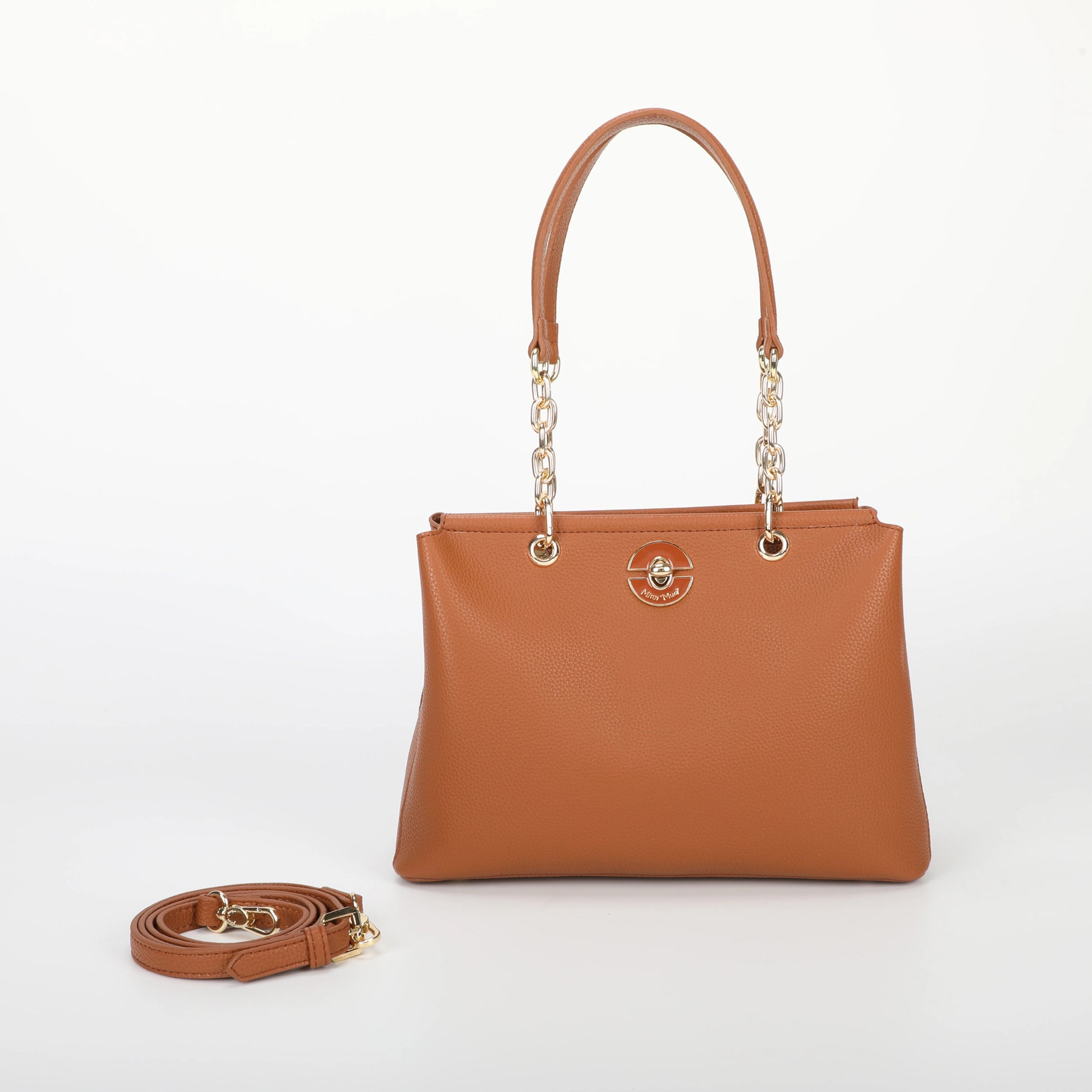 Mala quadrada Mimi Mua com alça de ombro combinando corrente e pele, além de alça extra removível para maior versatilidade. Fecho de zíper seguro e design estruturado tornam esta peça prática e elegante, perfeita para coordenados do dia a dia ou eventos especiais.