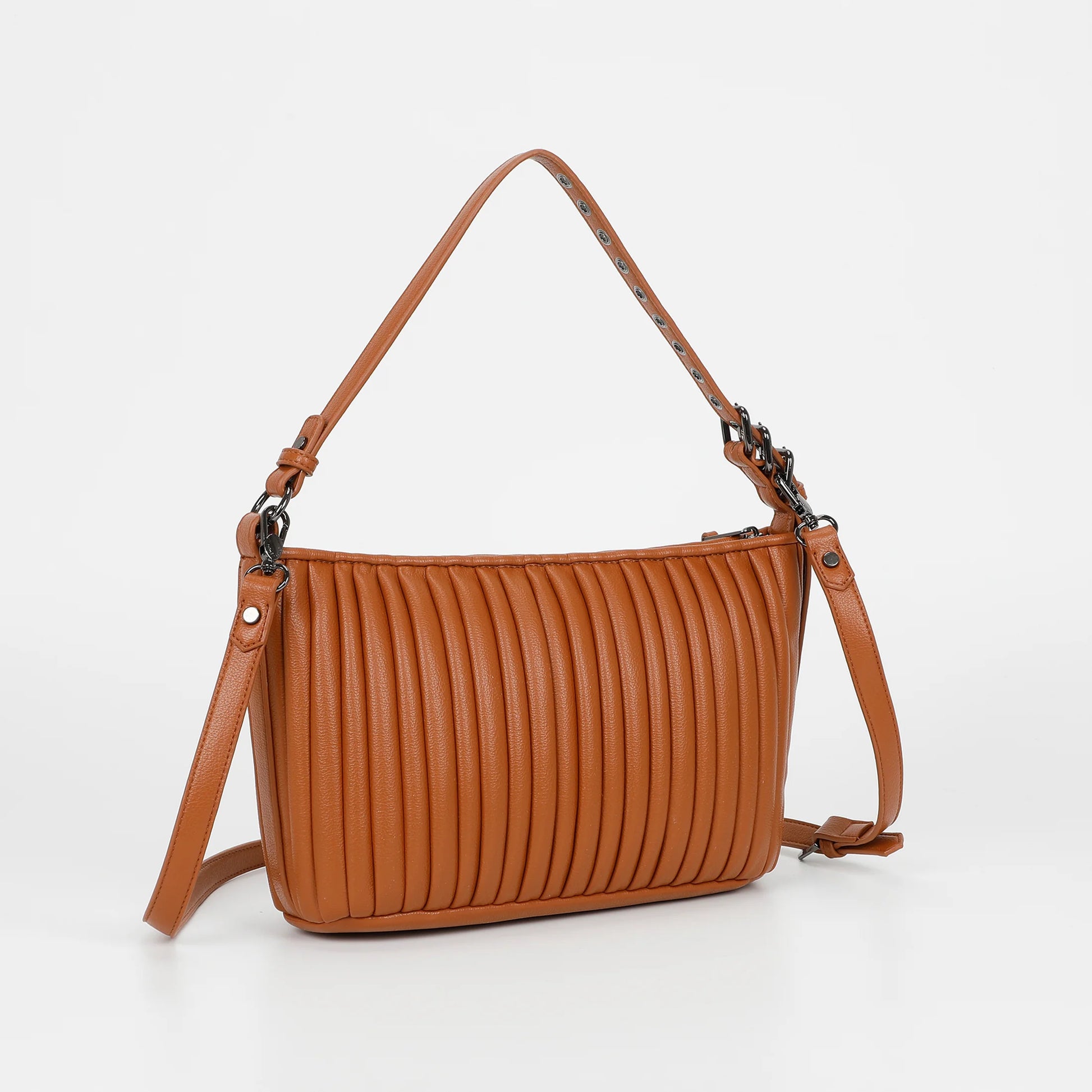 Mala Mimi Mua com design elegante e acolchoado que adiciona textura à peça. Conta com duas alças, permitindo uso tanto de mão quanto ao ombro, e fecho de zíper seguro para proteger os pertences. Uma bolsa versátil e sofisticada, perfeita para complementar looks do dia a dia ou ocasiões especiais.