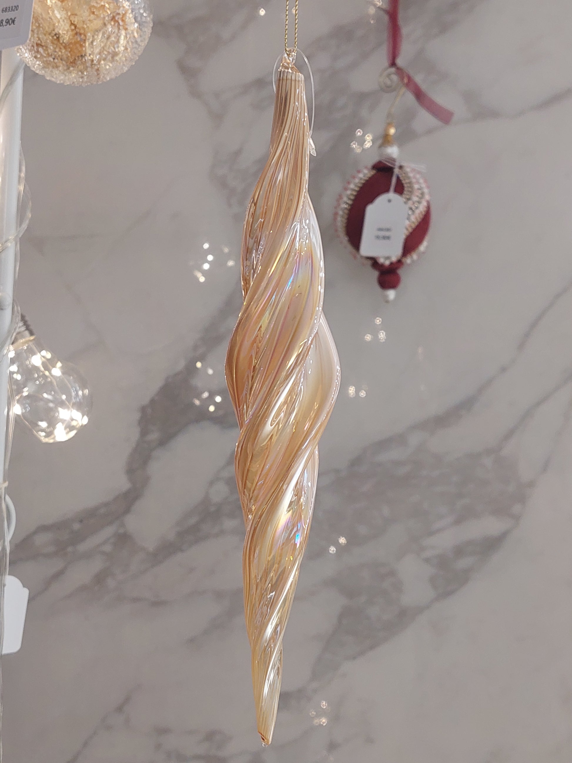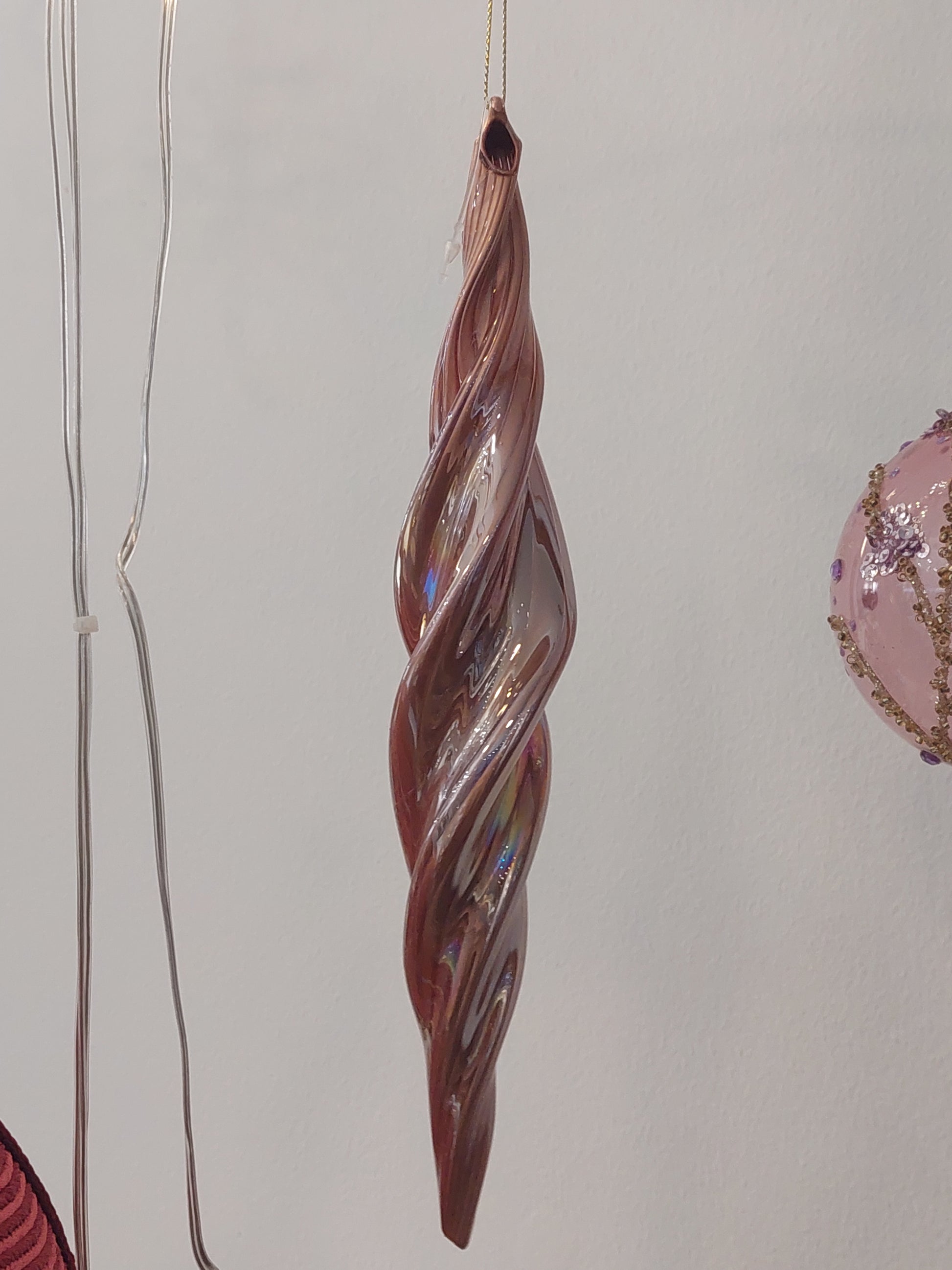 Efeito de árvore de natal. Torcido de vidro opaco, metalizado.