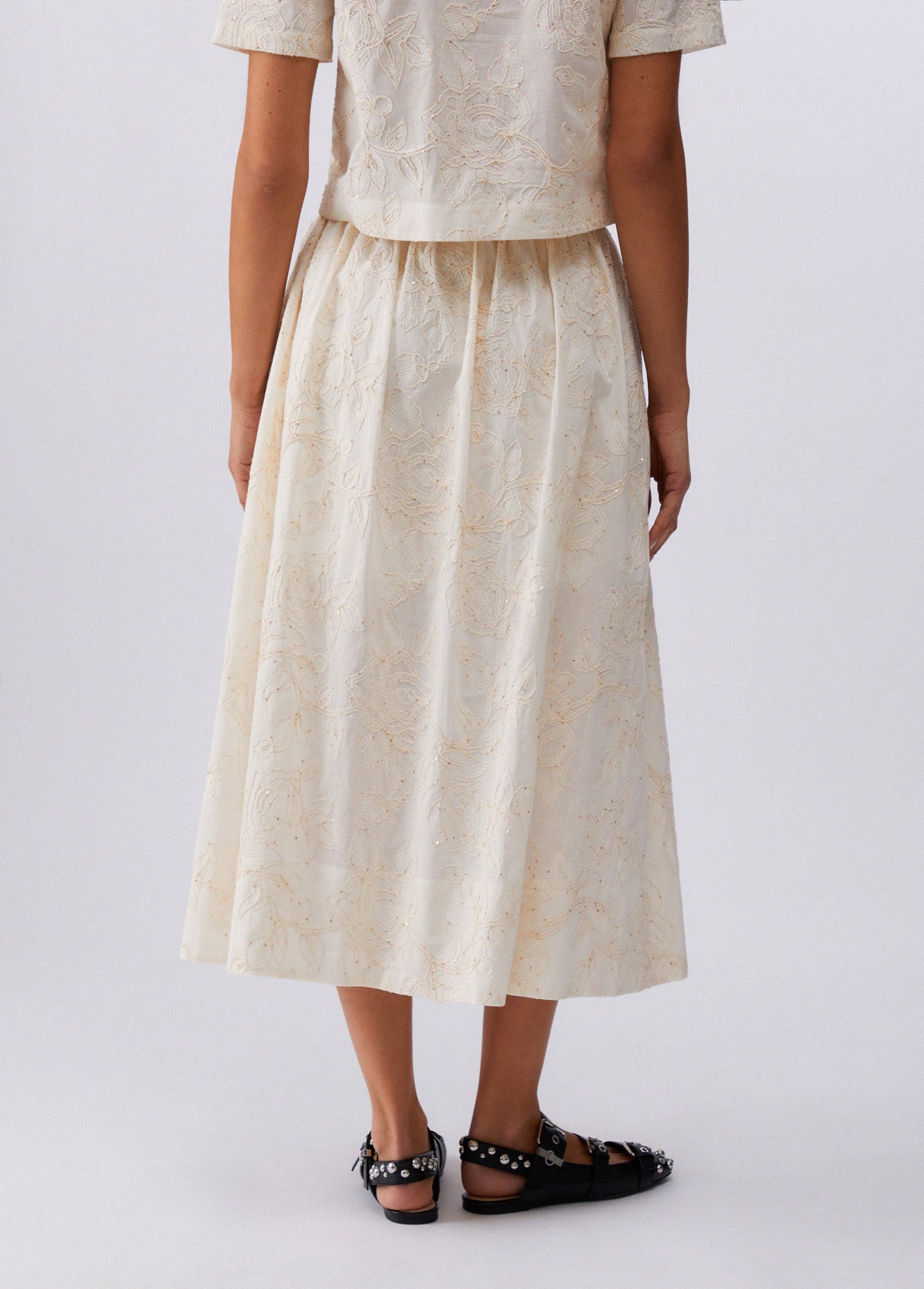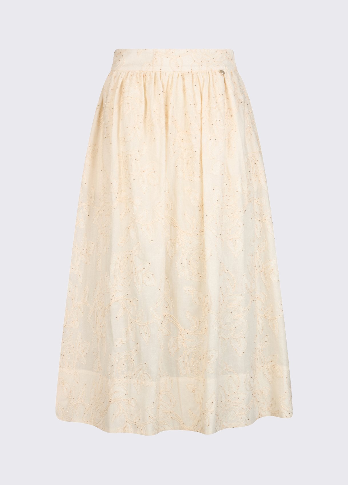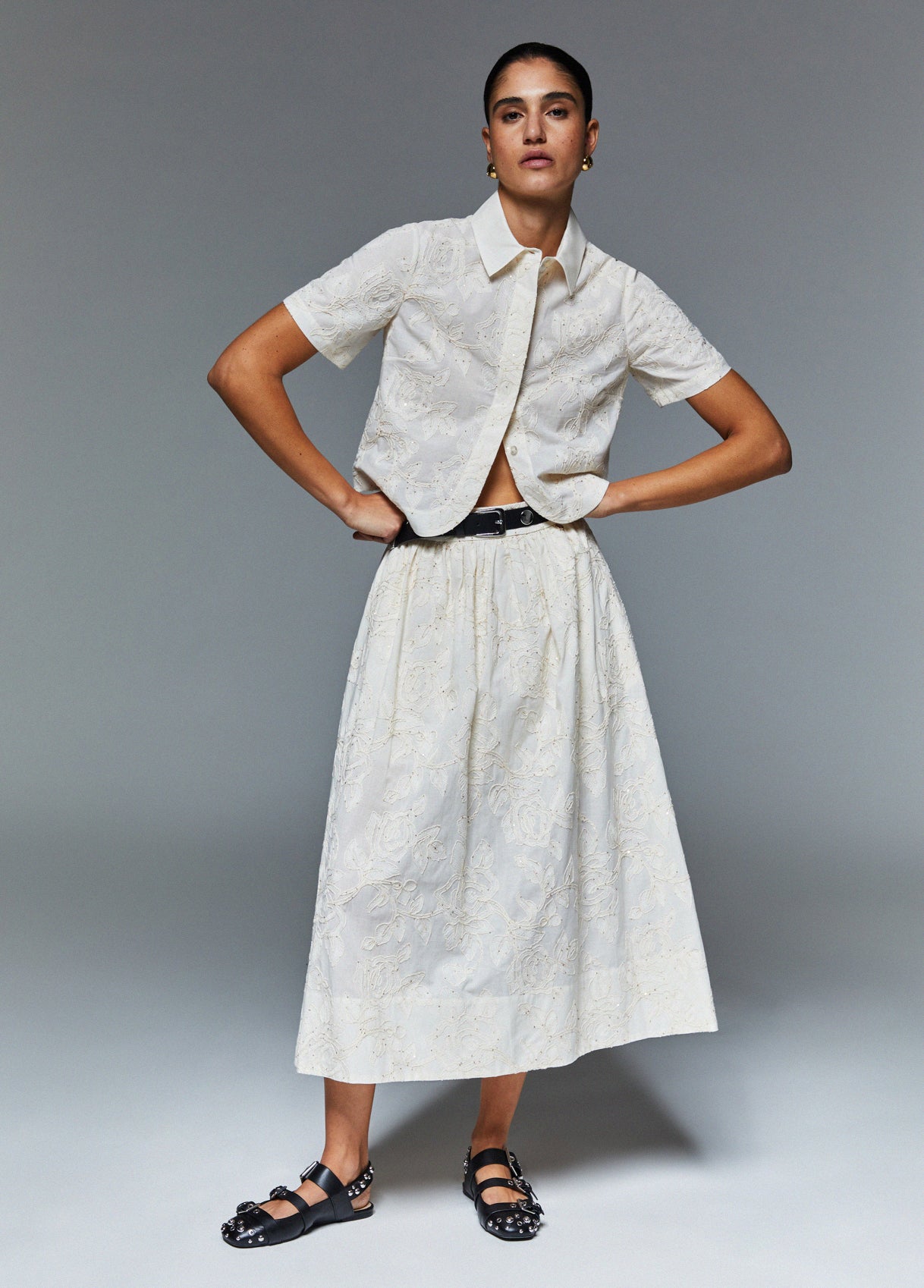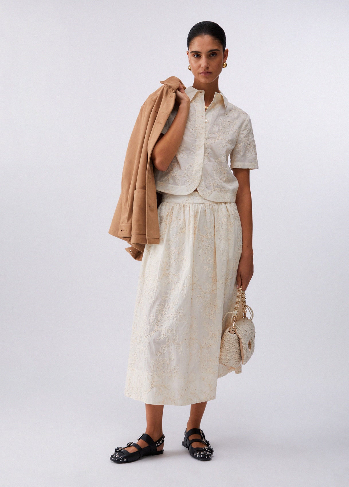 A saia midi Liu Jo em musselina de algodão distingue-se pela leveza e fluidez do tecido, que confere um caimento suave e feminino à silhueta. O bordado floral com micro lantejoulas acrescenta um detalhe de luminosidade discreta e sofisticação, tornando a peça numa escolha elegante para ocasiões que pedem uma presença refinada e cuidada. Os bolsos asseguram funcionalidade prática sem comprometer a linha da saia, enquanto o fecho lateral com zíper invisível garante uma silhueta limpa e bem definida. Versátil e de carácter atemporal, adapta-se com naturalidade a diferentes contextos e combinações. Disponível na Robe Noire, esta saia Liu Jo é uma proposta para a mulher que valoriza o detalhe têxtil e uma estética feminina com acabamento irrepreensível.