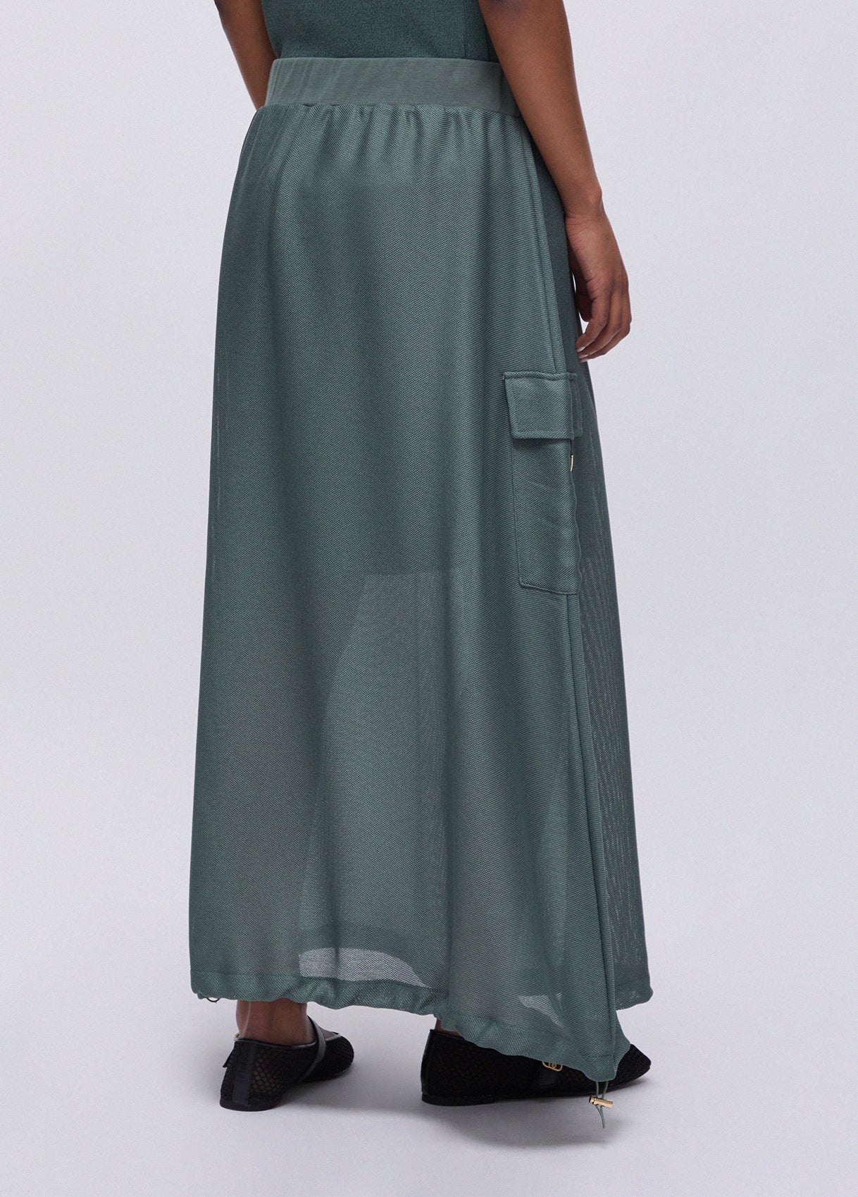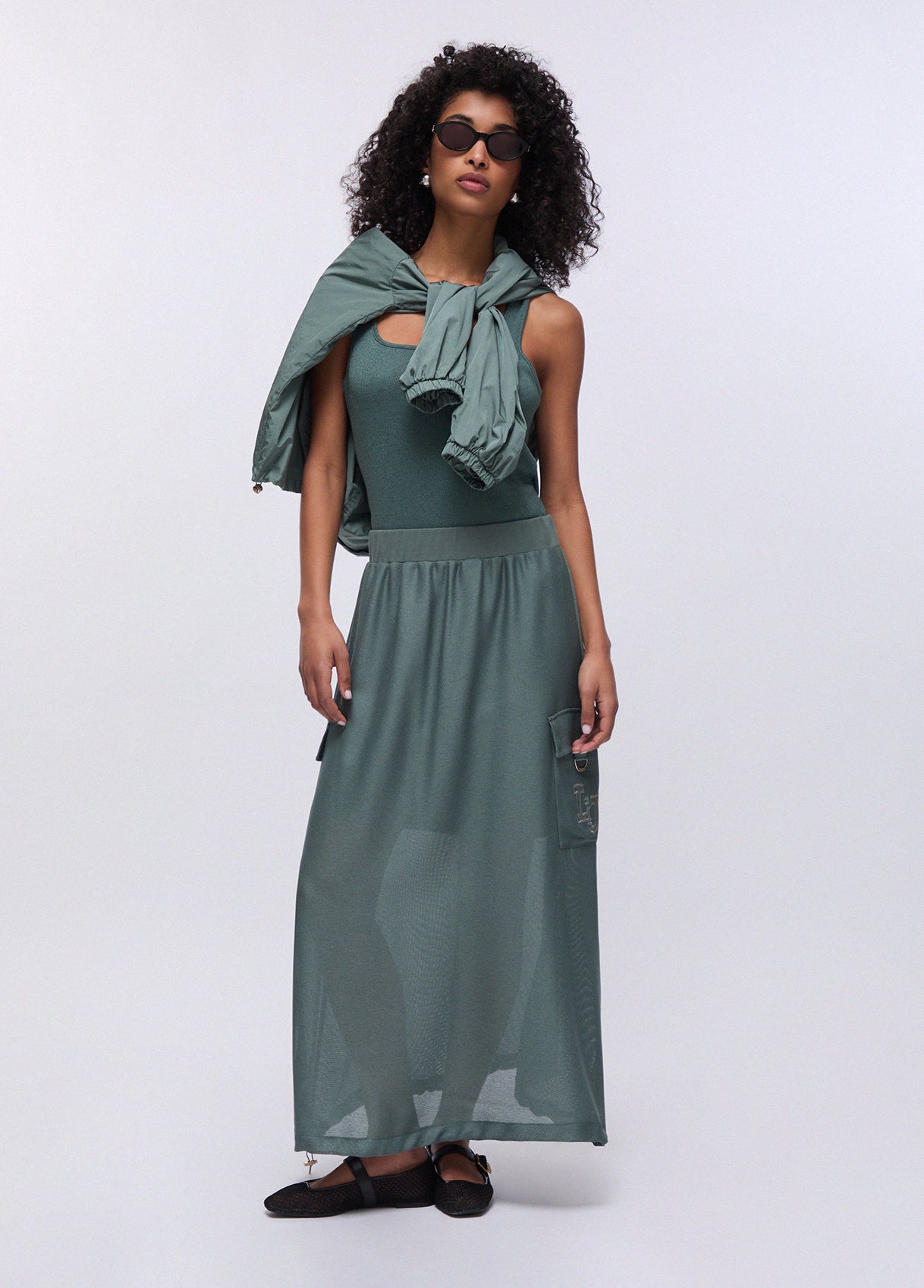 Saia comprida Liu Jo em tule com forro curto, de silhueta fluida e construção cuidada que alia leveza e cobertura num equilíbrio elegante. A cintura elástica assegura conforto e adaptabilidade, enquanto os bolsos quadrados laterais integram funcionalidade e modernidade. O acabamento com atilhos ajustáveis acrescenta um detalhe de personalidade e versatilidade, permitindo modular o comprimento ou o volume da saia conforme a ocasião e a preferência de cada mulher. Uma peça com caráter e presença, que reflete a abordagem da Liu Jo entre o feminino e o contemporâneo, adequada para diferentes contextos e fácil de incorporar num guarda-roupa construído com critério.