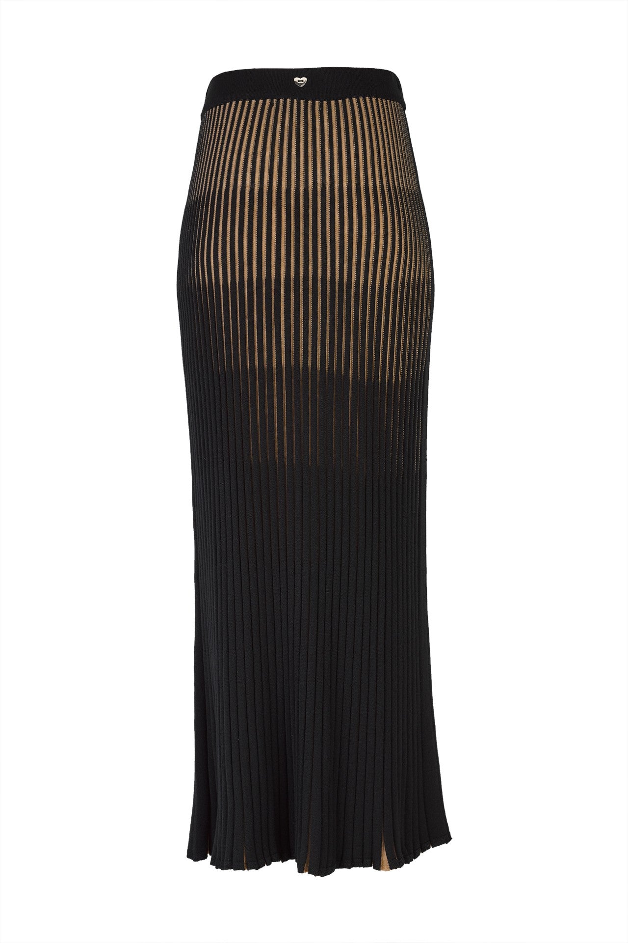 Saia comprida Silvina Campos em malha com elegante efeito plissado, que cria reflexos sofisticados em contraste com o movimento. Apresenta cintura elástica para maior conforto e ajuste perfeito. Uma peça versátil e feminina, ideal para looks modernos e requintados.