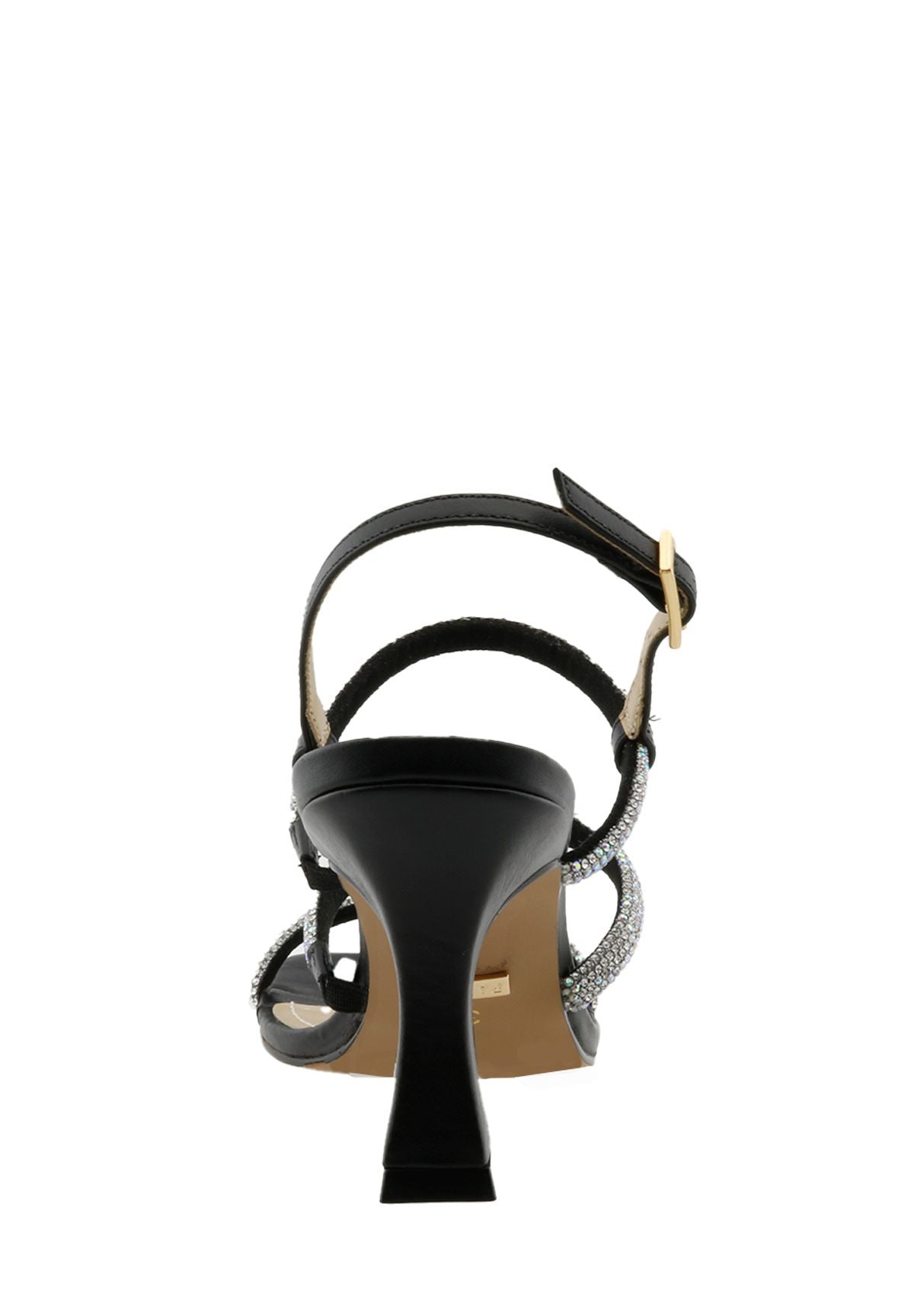 Sandálias de salto alto forma de taça, faixas em strass.