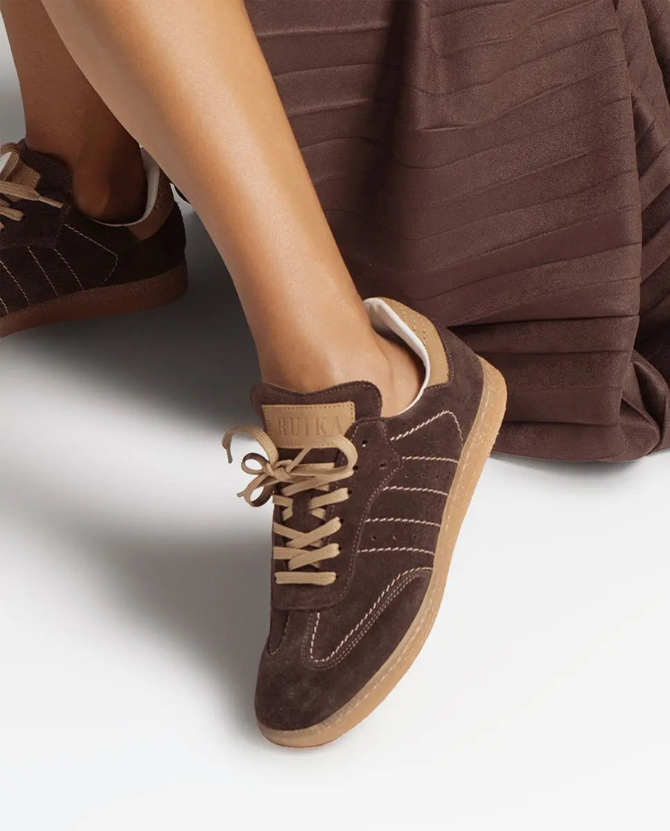 Sapatilha Ruika em pele camurça, com detalhes em contraste que acrescentam um toque moderno e distinto. Confortável e versátil, perfeita para um estilo casual e sofisticado.