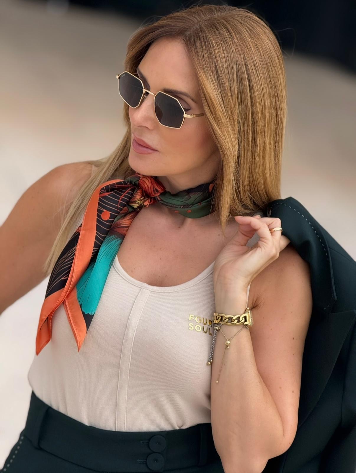 Top de alças Foursoul básico e versátil, com decote redondo e aplicação discreta do logotipo em dourado no peito. Confortável e fácil de combinar, é uma peça essencial para coordenados casuais ou para usar como base em looks mais elaborados.