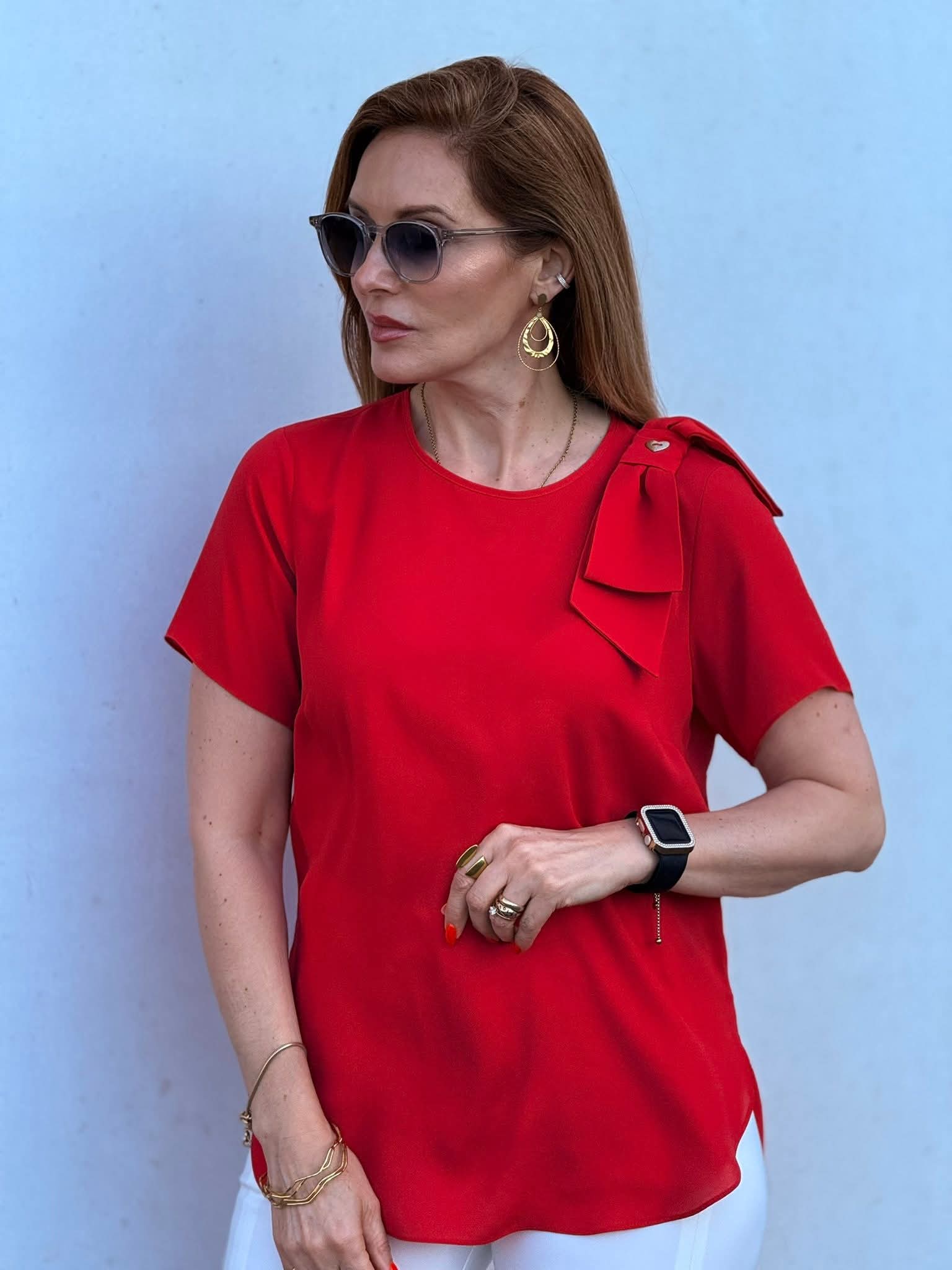 A túnica Silvina Campos em manga curta é uma peça feminina de linha fluida e detalhes cuidados, pensada para um uso versátil e sofisticado. O decote redondo confere leveza e elegância discreta, enquanto o laço delicado no ombro esquerdo introduz um toque de feminilidade contida, sem excessos. O fecho com botão nas costas garante um acabamento clean e uma silhueta bem definida. Fácil de combinar com calças de alfaiataria ou saia de corte reto, adapta-se tanto ao ambiente profissional como a ocasiões sociais mais compostas. Uma escolha atemporal que expressa o rigor e a sensibilidade estética da Silvina Campos.