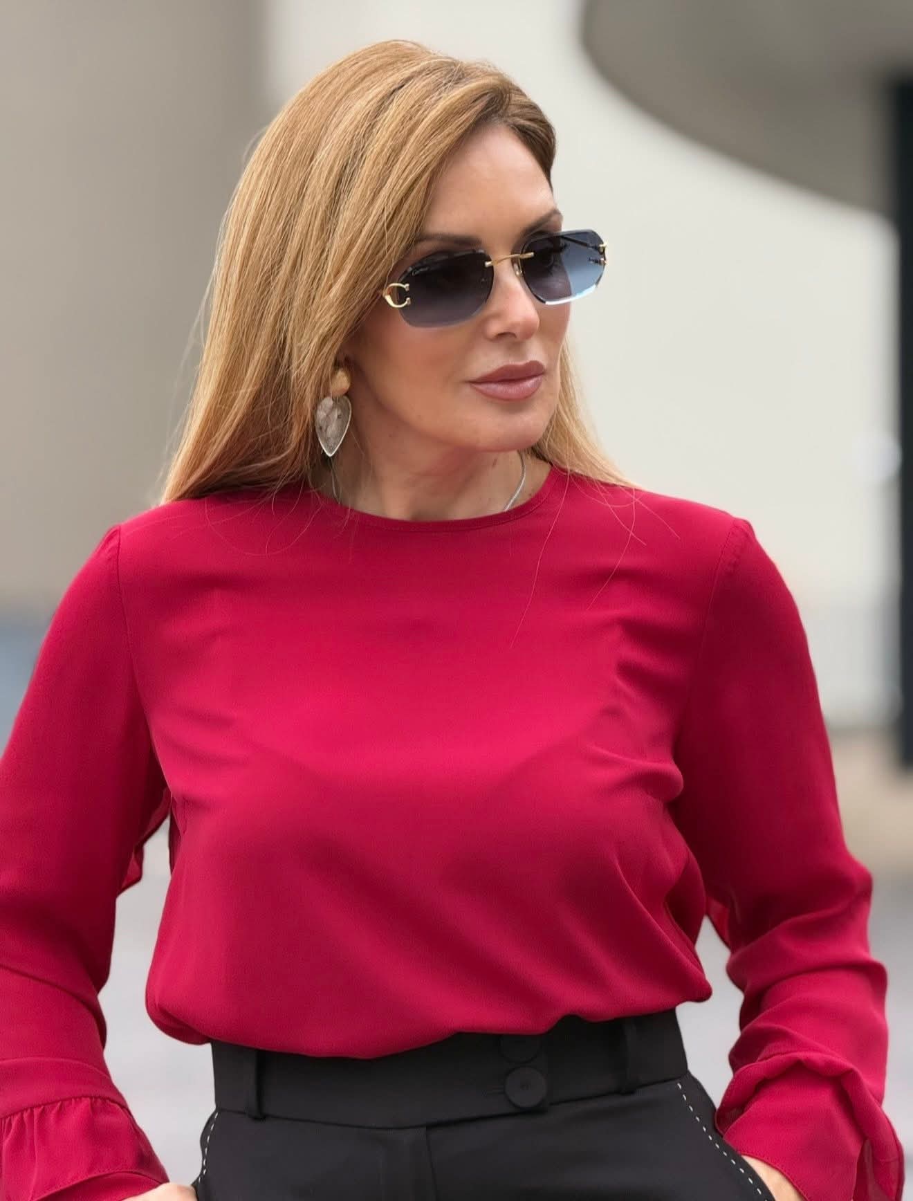 Túnica Silvina Campos lisa, de corte fluído que garante leveza e elegância. As mangas com folhos acrescentam movimento e feminilidade ao visual. Fecho discreto nas costas com botão.