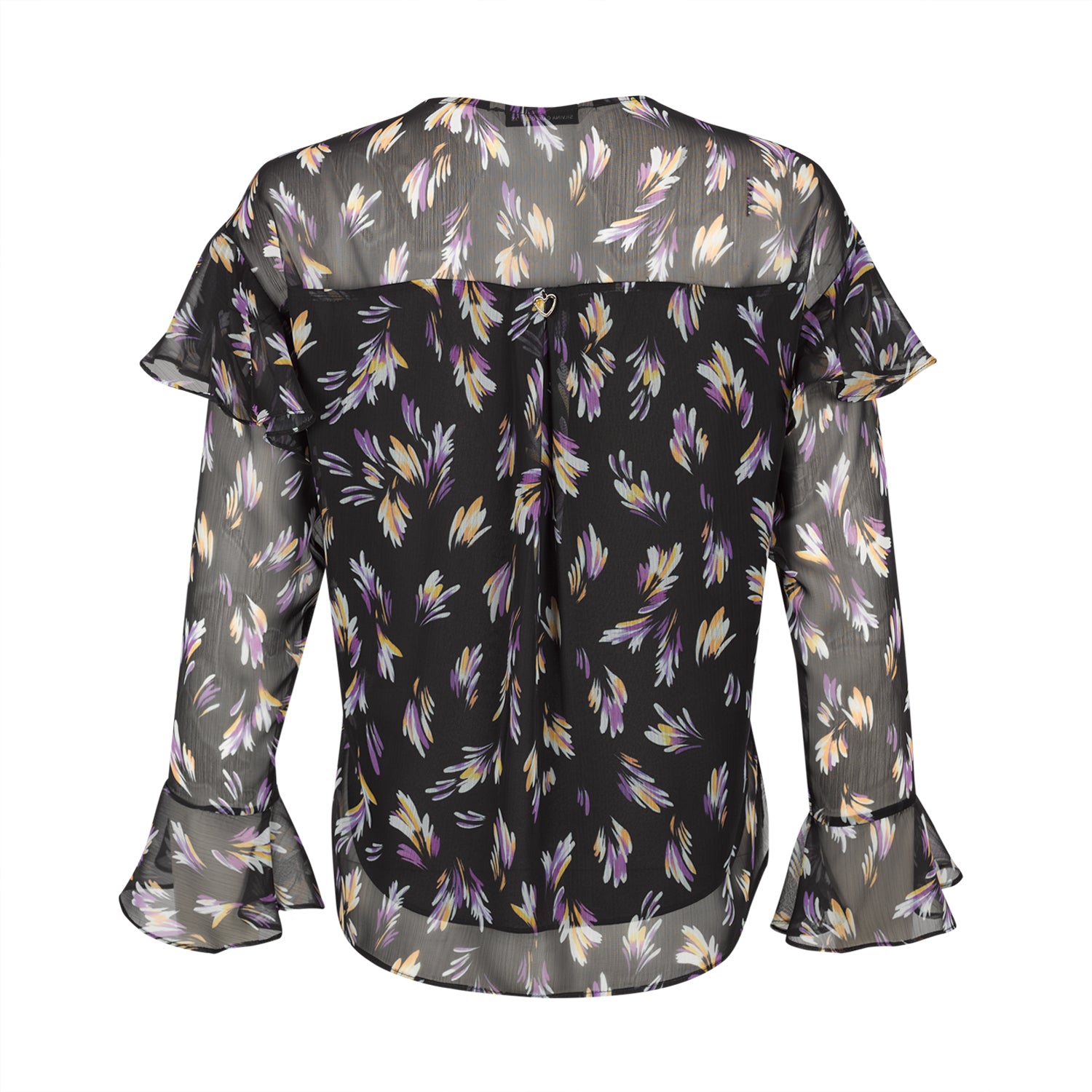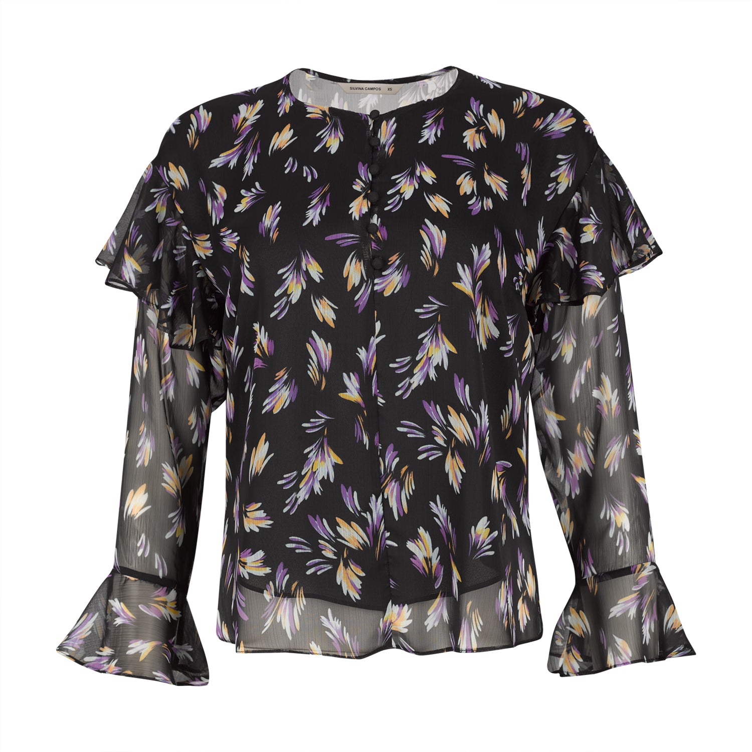 Blusa Silvina Campos com decote redondo, realçado por botões forrados que acrescentam um detalhe discreto e muito cuidado. Os folhos nos ombros e no acabamento das mangas trazem leveza e movimento, equilibrando feminilidade com uma linha limpa e contemporânea. É uma peça fácil de integrar em coordenados elegantes do dia a dia: resulta com calças de alfaiataria para um registo mais formal, ou com denim escuro e blazer para uma abordagem mais descontraída, mantendo sempre um ar polido. Ideal para quem procura uma blusa versátil, com pormenores que fazem a diferença.